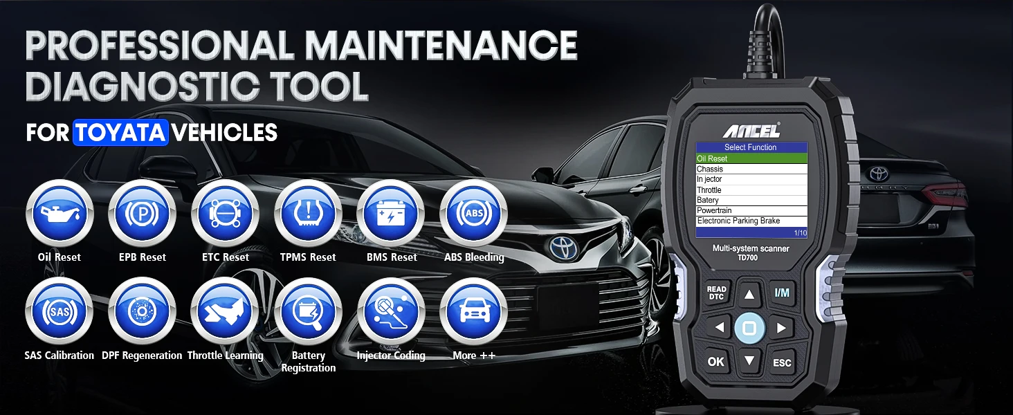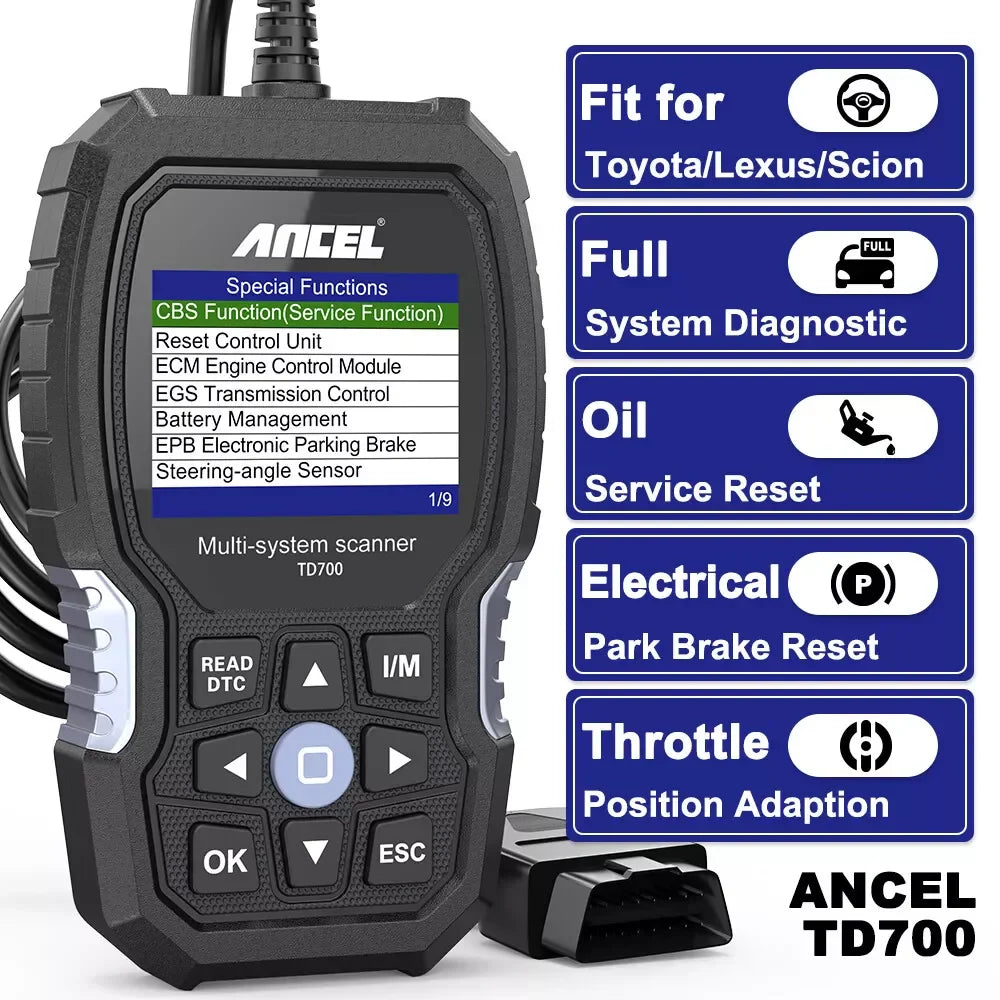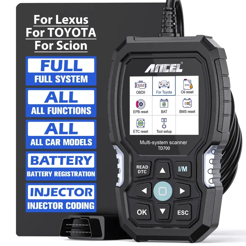 Ancel TD700 OBD2 Scanner All System Fit For TOYOTA CAMRY LEXUS COROLLA Reader Transmission TPMS Relearn ABS Engine