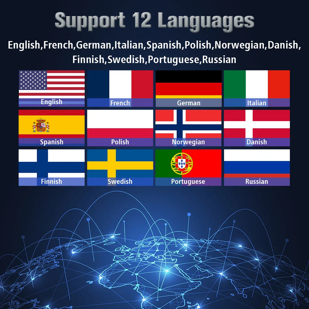 ️ Support 12 languages: English, German, French, Spanish, Italian, Russian, Portuguese, Finnish, Polish, Danish, Sweden Norway