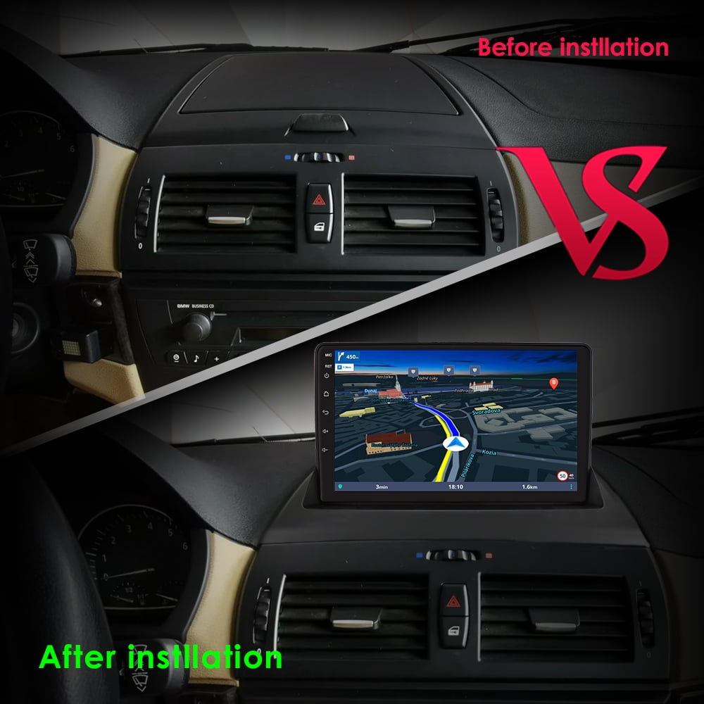 Compatible Vehicles: 2004 2005 2006 2007 2008 2009 2010 2011 2012 BMW X3 E83 Note: Before you make the purchase, please check if your car model is on the compatible list. This unit is a 2 din radio with 9" touch screen. You can watch videos and listen to music on this unit. It's running Android 12 system, so most of Android Apps can be used on this unit, such as Youtube, Google Chrome, Facebook, etc. This unit also has the built-in GPS navigation system. Bluetooth, Wifi and hotspot connections are supported on this unit as well. The steering wheel control can work with this unit if your car model is on the compatible list.
