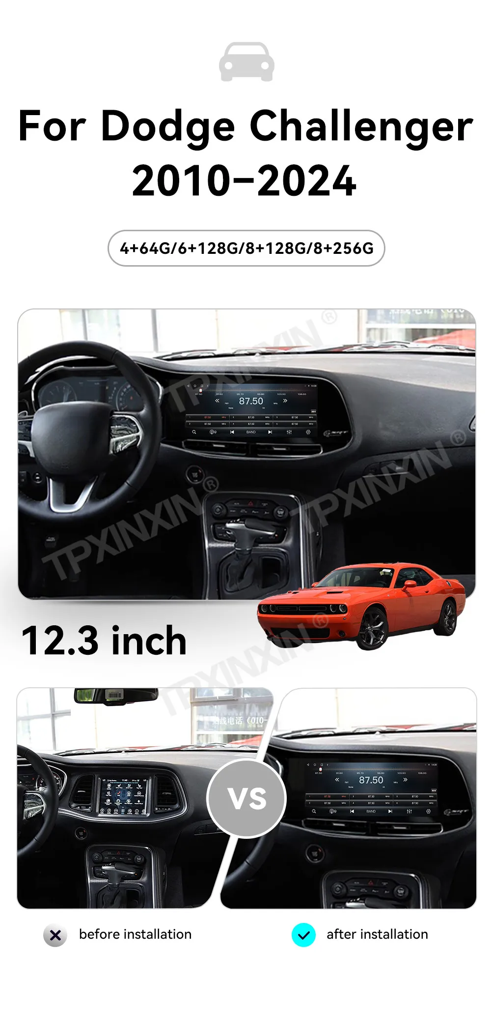 Android 13.0 Navigation Car Radio Carplay For Dodge Challenger 2010 -2024 Auto Digital Multimedia 12.3 Inch Screen Head Unit DSP