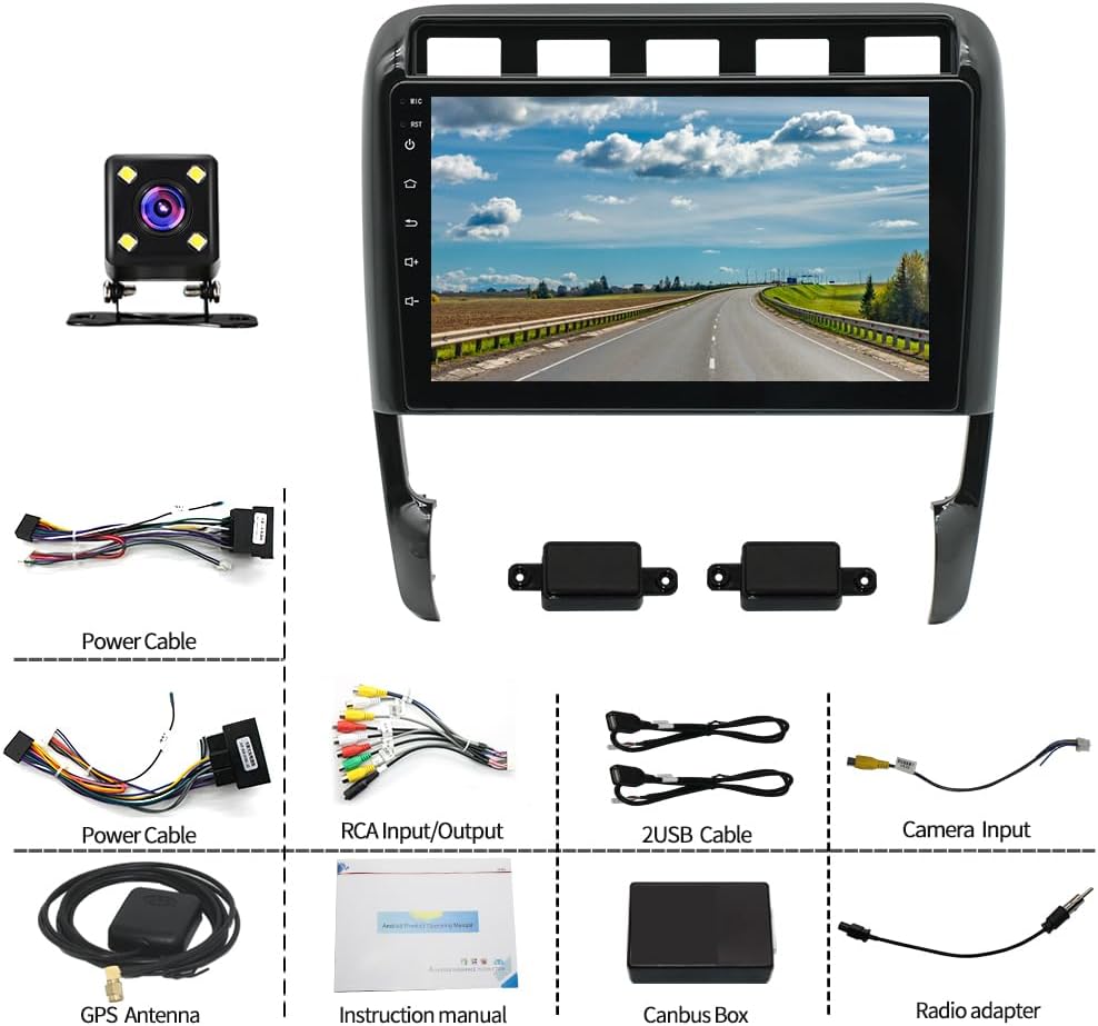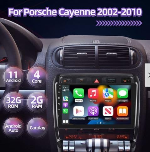 Android 13 Car Stereo for Porsche Cayenne 2002-2010, 2GB+32GB Wireless Carplay & Android Auto 9 inch 2.5D Tempered Glass Mirror auto Radio Player DSP Sound/WiFi/FM/SWC/MIC Dual USB + Backup Camera