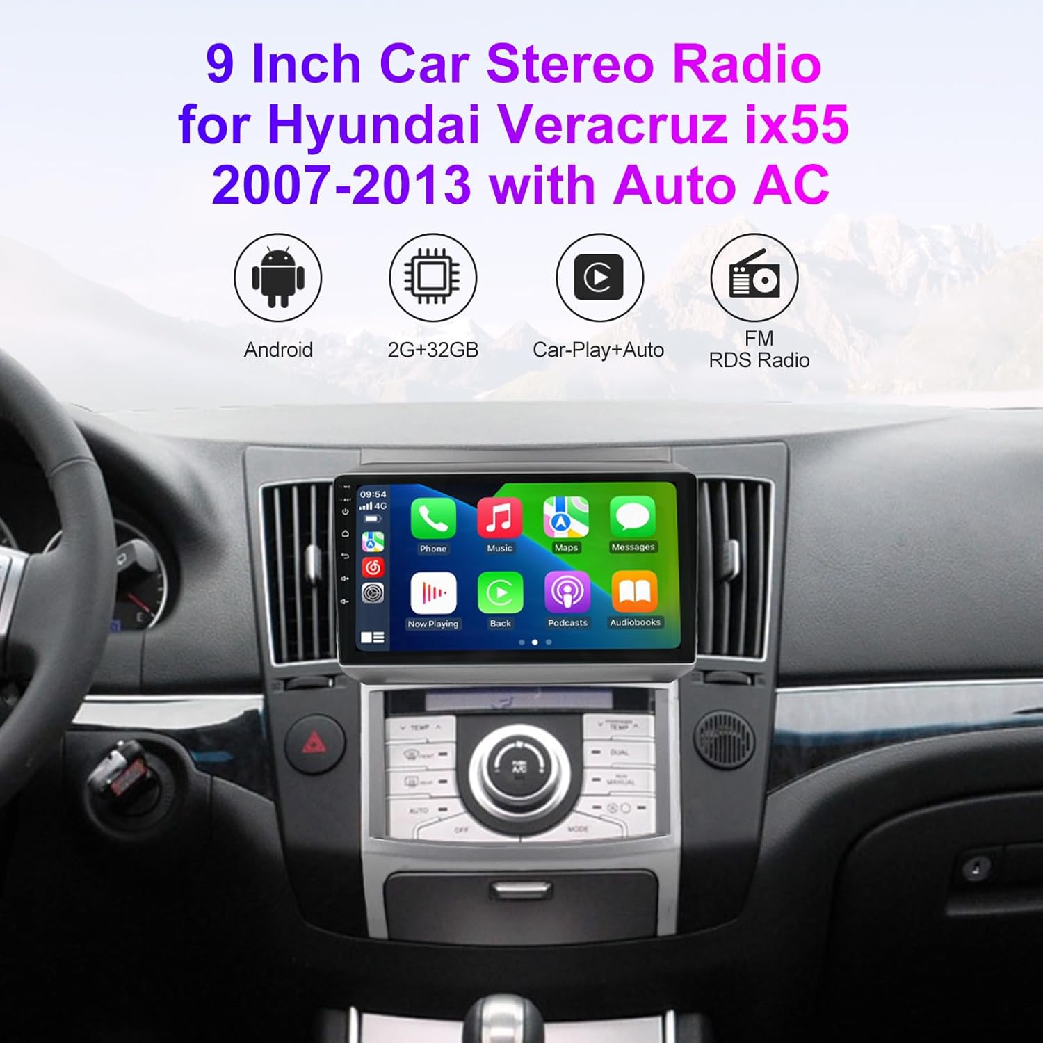 Android 13 Car Stereo Radio for Hyundai Veracruz ix55 2007-2013 Auto AC, Biorunn 9 Inch GPS Wireless Wired Car-Play Android Auto IPS Navi WiFi FM RDS Head Unit 2GB RAM 32GB ROM