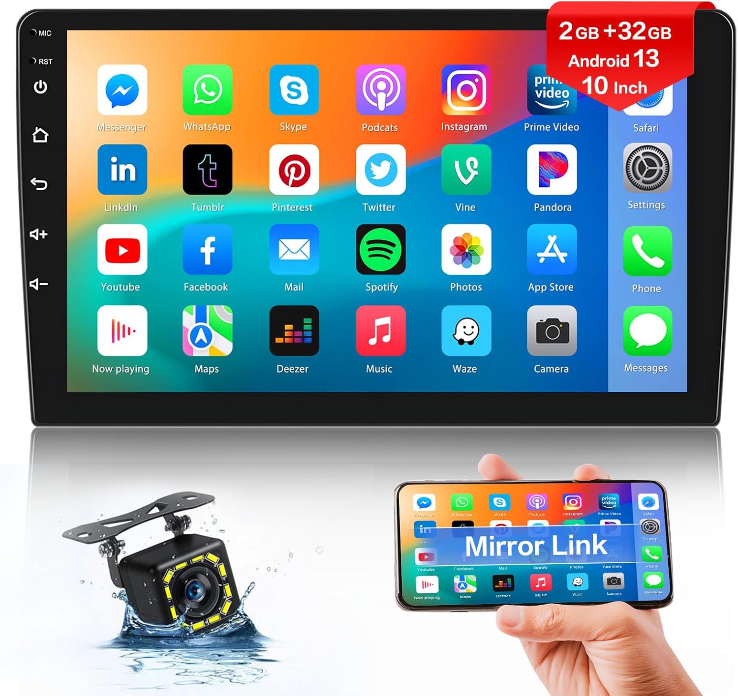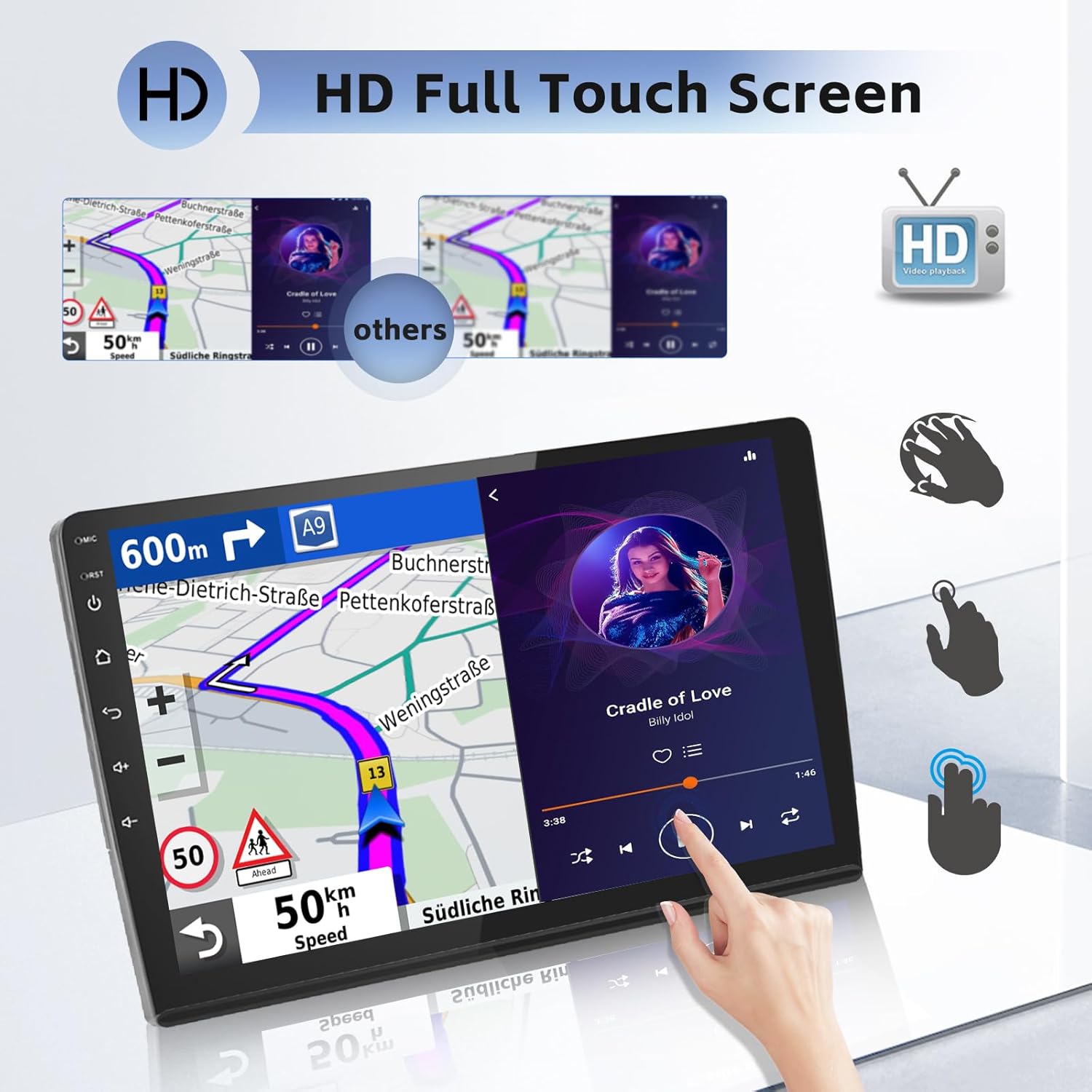 Android 13 Double Din Car Stereo GPS Navi 10 Inch Car Radio Touch Screen Android Head Unit Support Backup Camera SWC Bluetooth FM WiFi Mirror Link