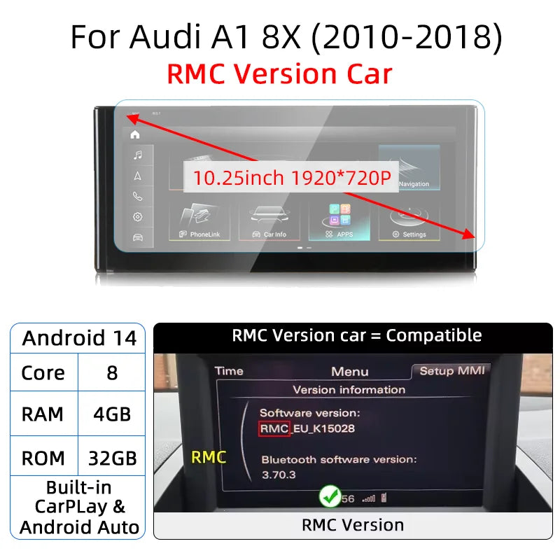 Android 14 Auto Radio CarPlay For Audi A1 Q2 2010-2023 GPS Car Multimedia Player Navi Stereo DSP WIFI SIM BT IPS Touch Screen