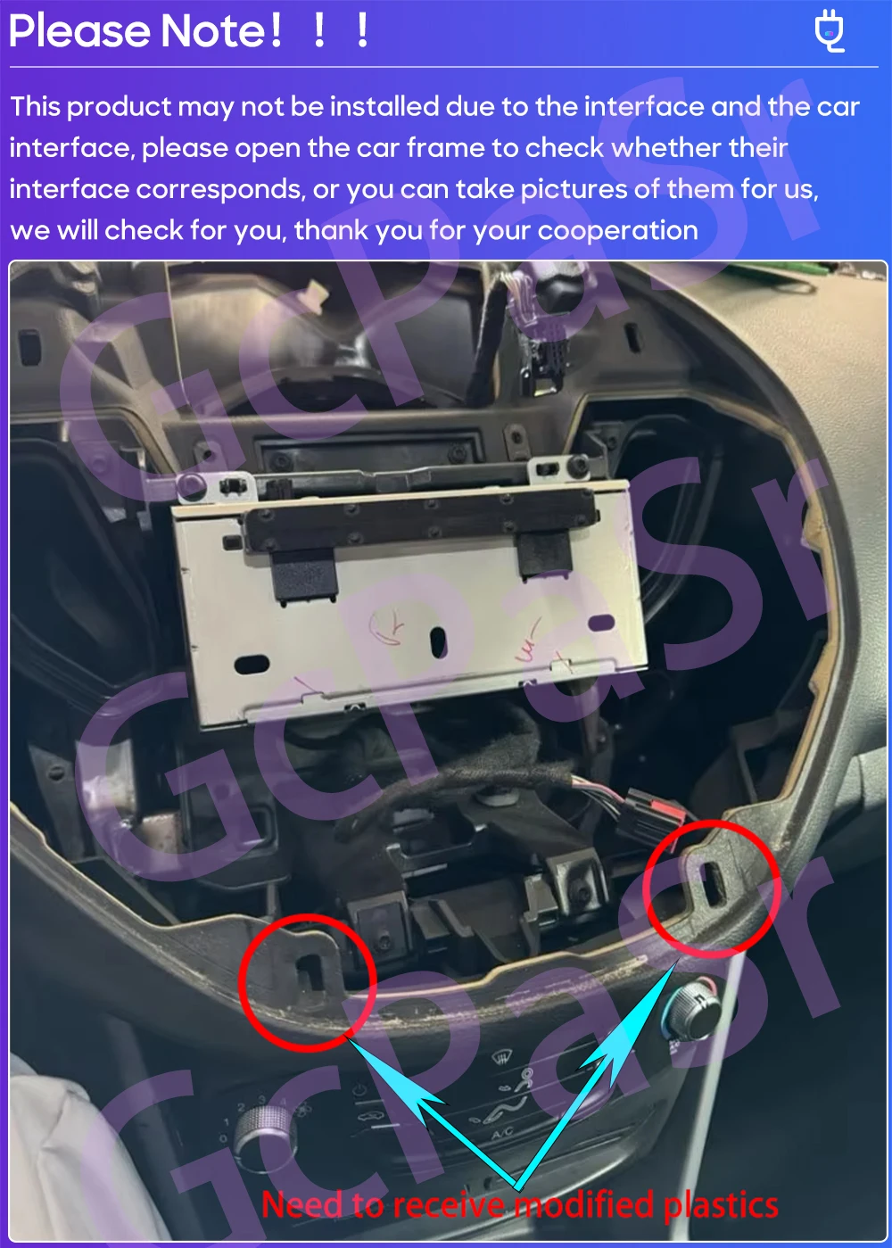 This product may not be installed due to the interface and the car interface, please open the car frame to check whether their interface corresponds, or you can take pictures of them for us,we will check for you, thank you for your cooperation