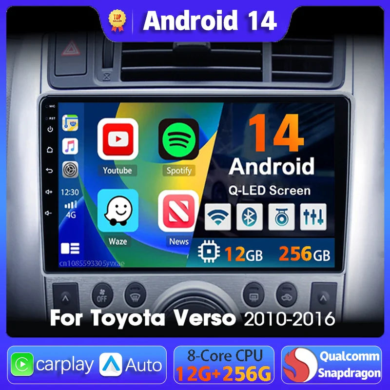 Android 14 Car radio Navigation Multimedia Player For Toyota Verso 2010 2011 2012 2013 2014 2015 2016 Carplay Auto Stereo video