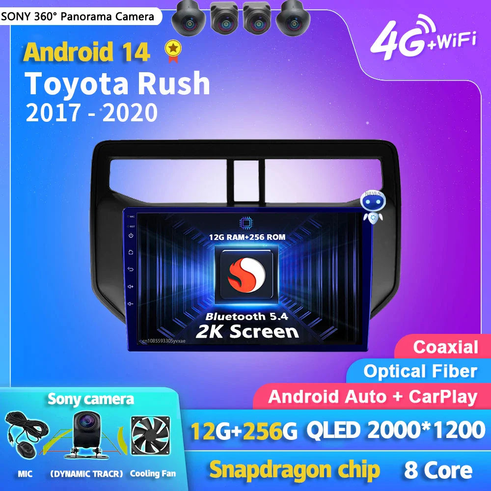 Android 14 Carplay Auto 2K Screen Car Radio BT Multimedia Player For Toyota Rush 2017 - 2020 Autoradio GPS Stereo 2din Head Unit
