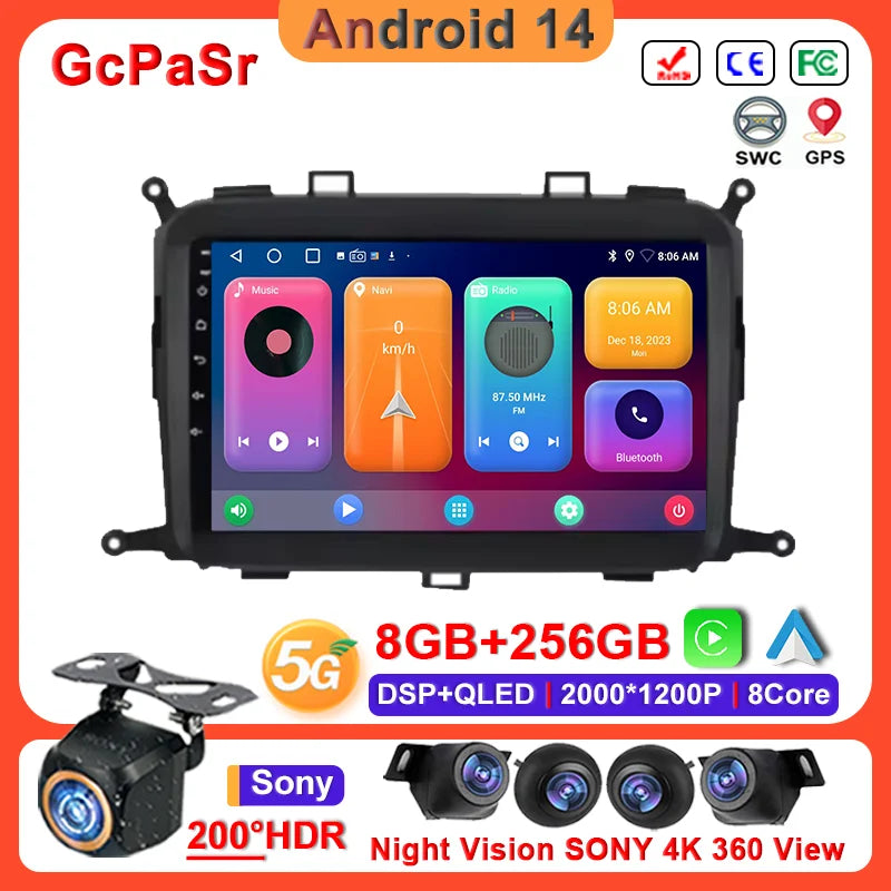Android 14 Carplay Auto Car Radio For Kia Carens 2013 - 2018 Multimedia Player Auto Radio GPS Navigation TV Head Unit No 2 Din
