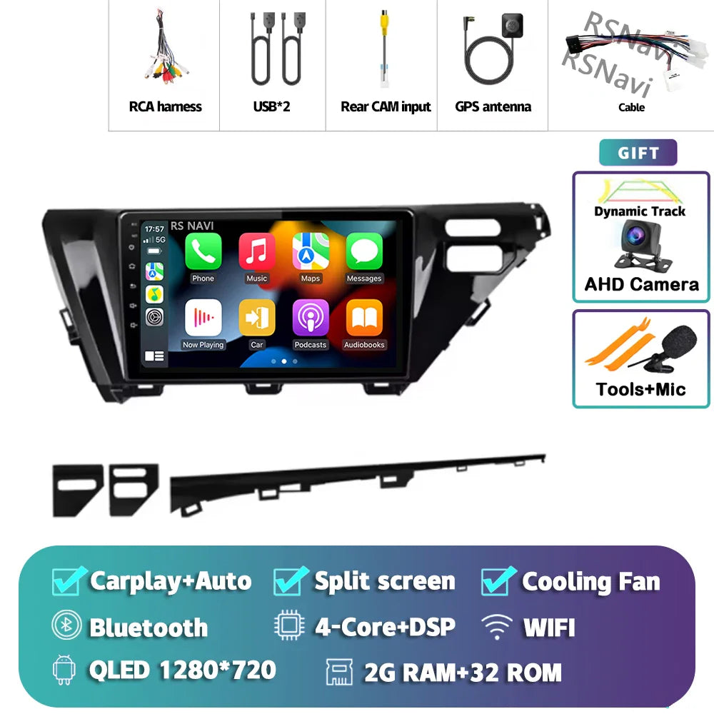 Android 14 Carplay Auto Car Radio For Toyota Camry 8 XV 70 2017 2018 2019 2020 Navigation Video Player Multimedia Stereo DSP GPS