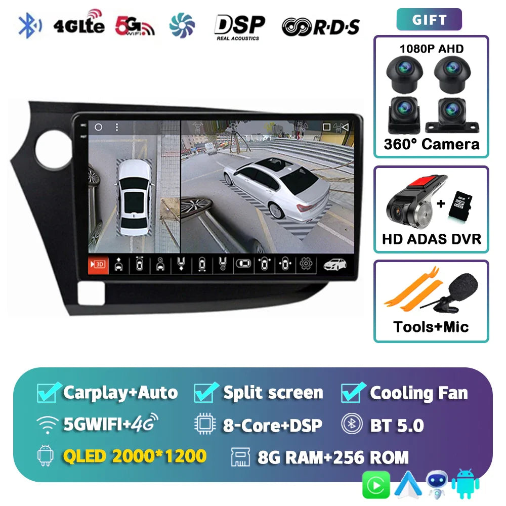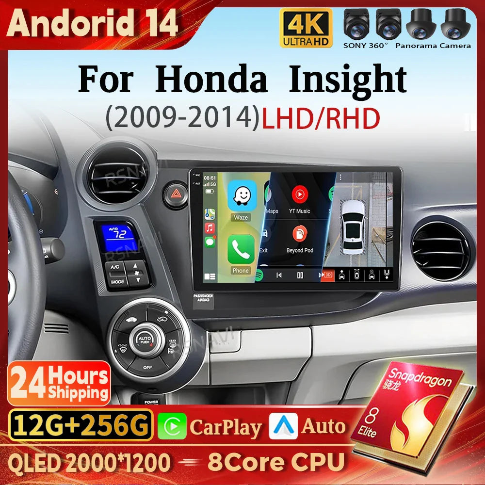 Android 14 Carplay Auto Car Radio Multimedia Player For HONDA INSIGHT 2009-2014 Navigation Autoradio GPS Stereo 2din Head Unit