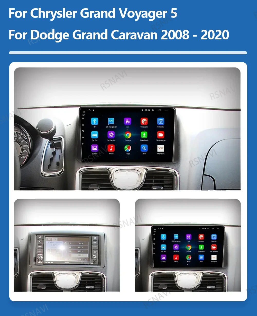 Android 14 Carplay Car Radio For Chrysler Grand Voyager 5 For Dodge Grand Caravan 2008 2011-2020 GPS Multimedia Stereo Head Unit