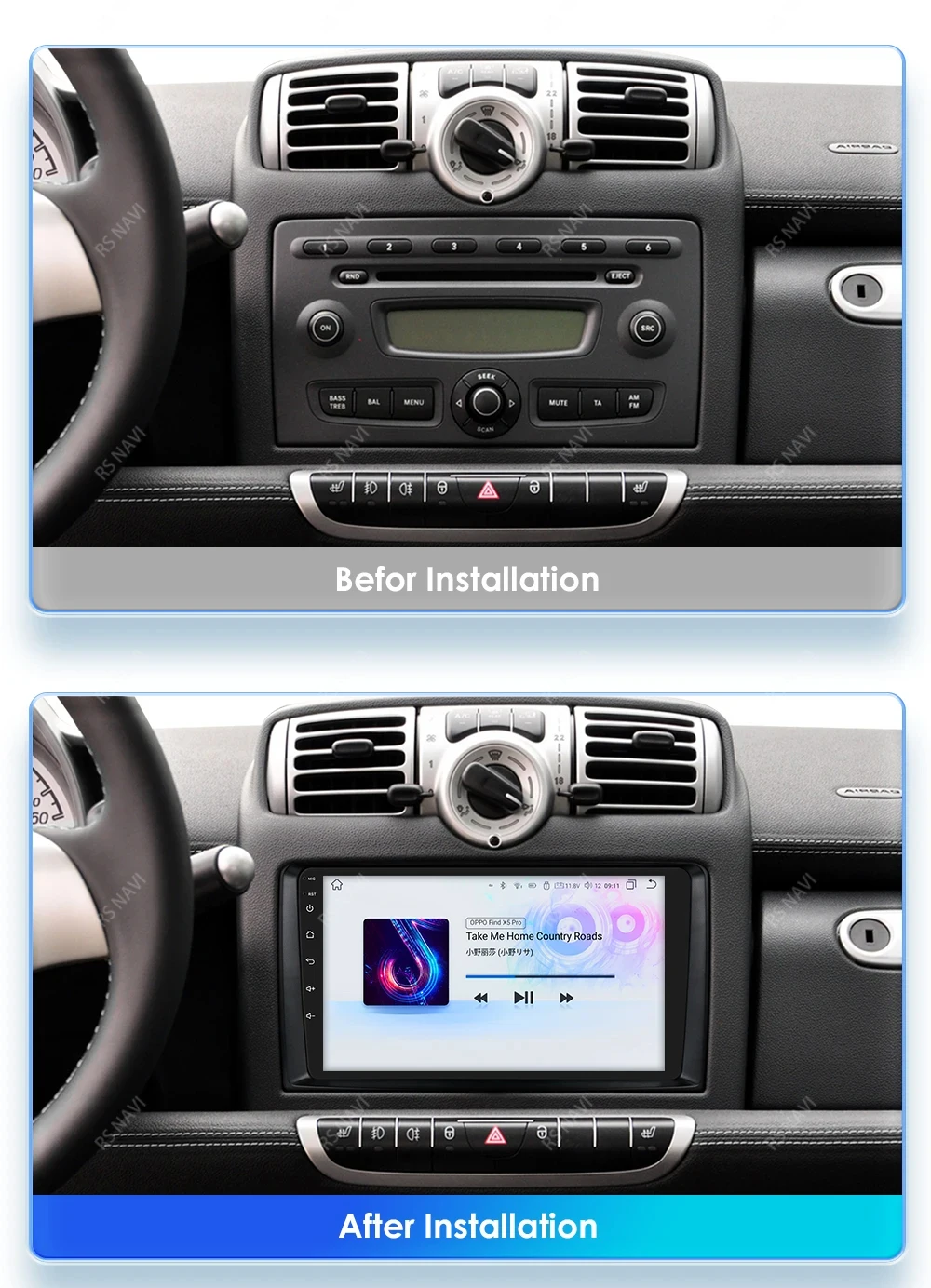 Android 14 Carplay Car Radio Multimedia For Mercedes-Benz Smart Fortwo 451 2005 - 2010 Head Unit GPS Navigation Video DVD Stereo