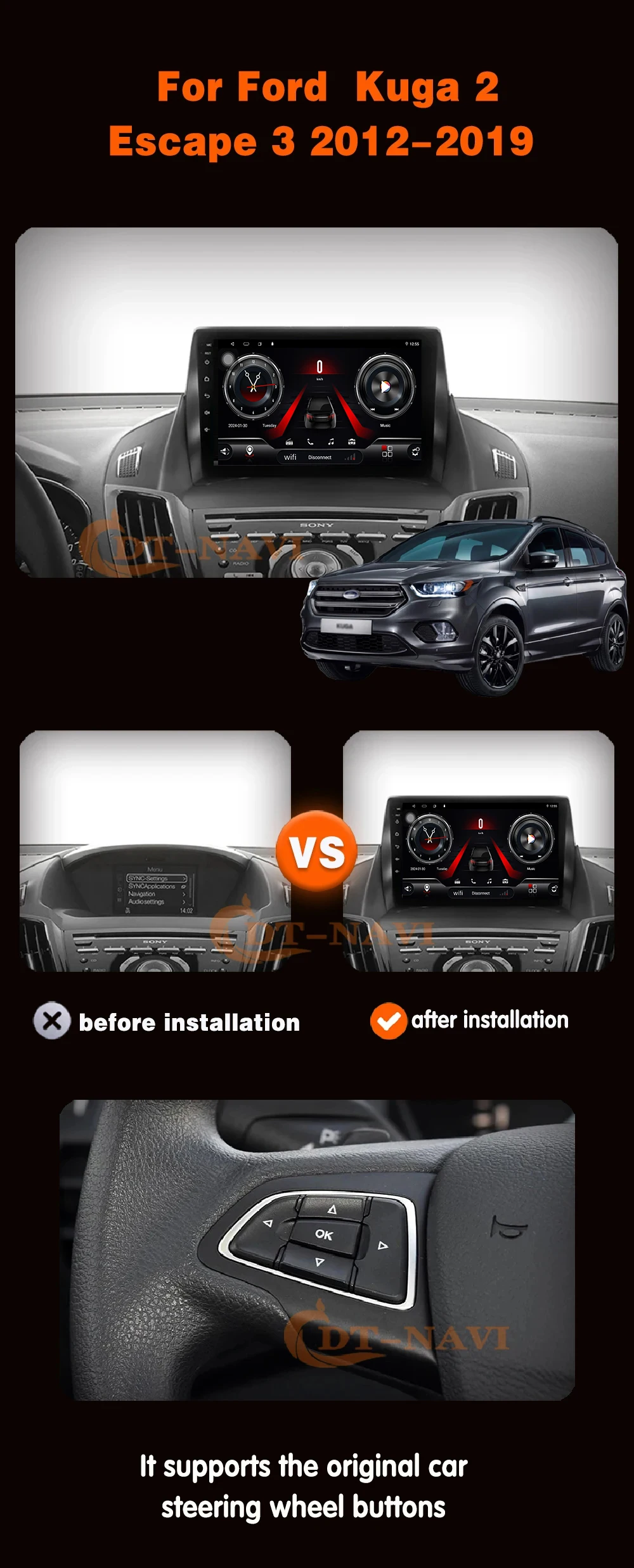 Android 14 For FORD C-MAX KUGA 2 ESCAPE 3 2012 - 2019 Car Radio Multimedia Video Player Navigation GPS WIFI 4G Stereo Head Unit