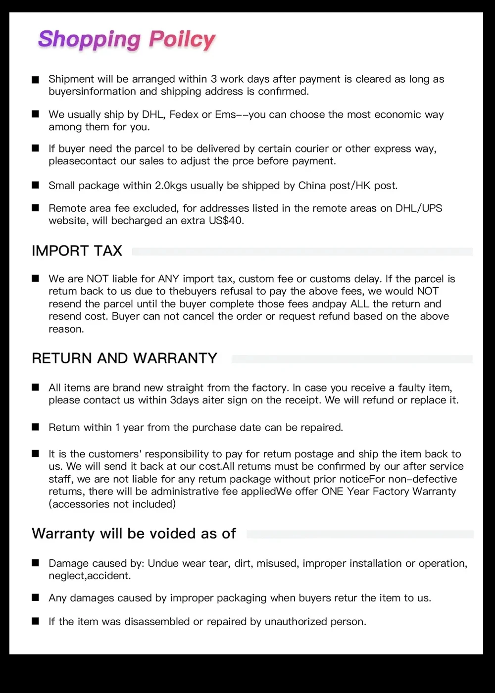 Customer satisfaction is our service tenet. That's why we offer a comprehensive 2-year warranty for all products. We believe in the durability and reliability of our products, and we support their performance. By cooperating with us, you can rest assured that any issues that may arise during the warranty period will be promptly resolved.