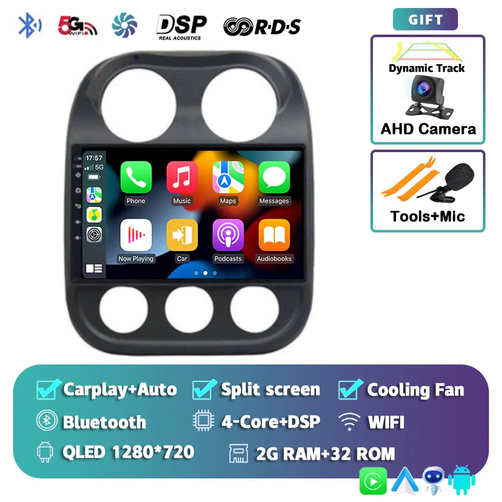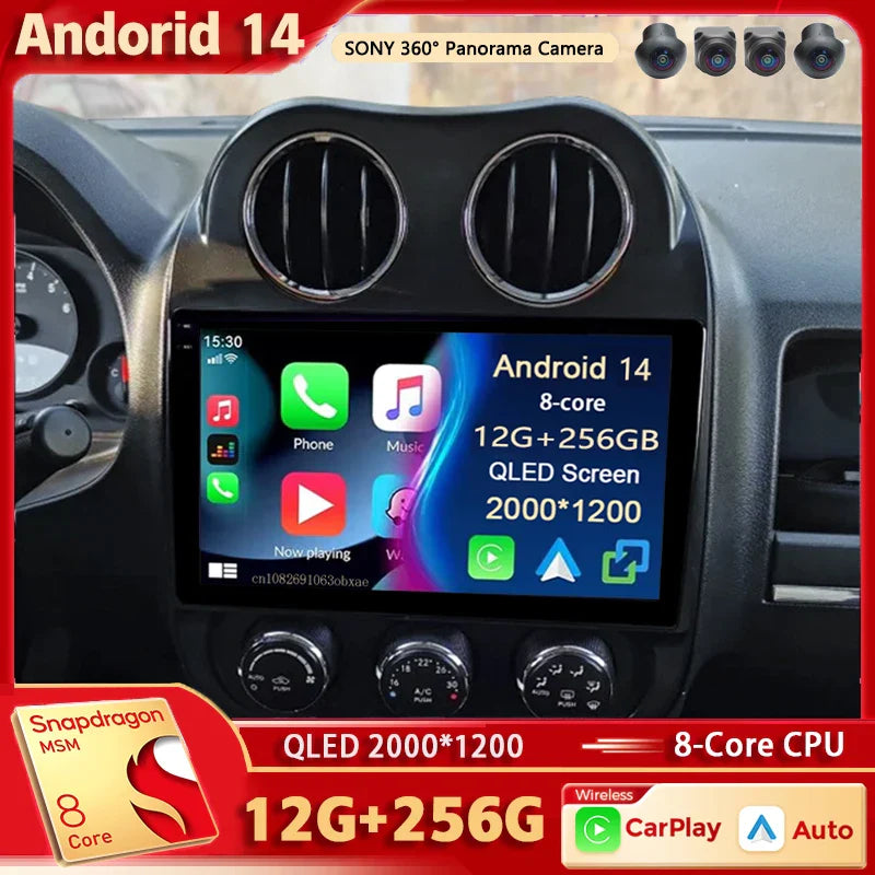 Android 14 For Jeep Compass Patriot 2010- 2016 2K QLED Android Car Radio Multimedia Video Player GPS AI Voice CarPlay Head Unit