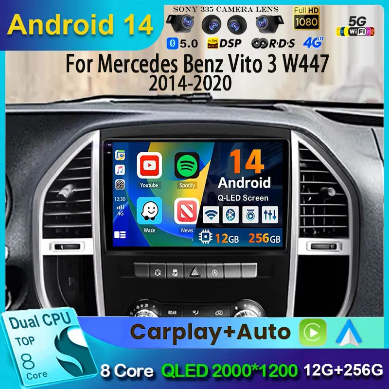Android 14 For Mercedes Benz Vito 3 W447 2014-2020 2K QLED Android Car Radio Multimedia Video Player 4G Stereo CarPlay Head Unit