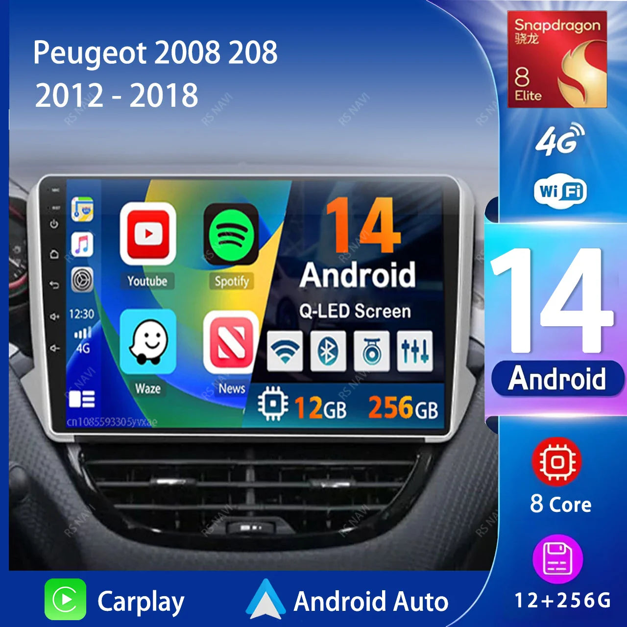 Android 14 Navigation Multimedia Player For Peugeot 2008 208 Series 2012 2013 2014 - 2018 Carplay Auto Stereo BT video Car radio