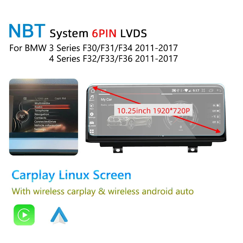 8.8''/10.25''Android 14 Wireless Carplay Auto Radio Touch Screen For BMW 1 2 3 4 Series F20 F21 F22 F30 F31 F32 F33 F34 Multimedia Player GPS