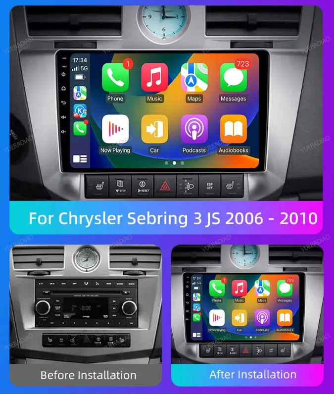 Android 15 Car Radio For Chrysler Sebring 3 JS Cirrus 2007 - 2010 GPS NAVI Multimedia Stereo Video Player 4G LTE 5G WIFI QLED BT