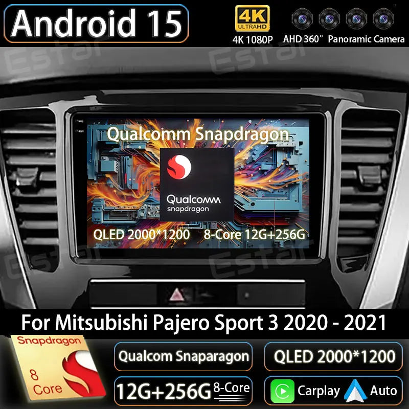 Android 15 Car Radio For Mitsubishi Pajero Sport 3 2020 - 2021 GPS Multimedia Player Navi Head Unit Stereo 360 Camera QLED Video