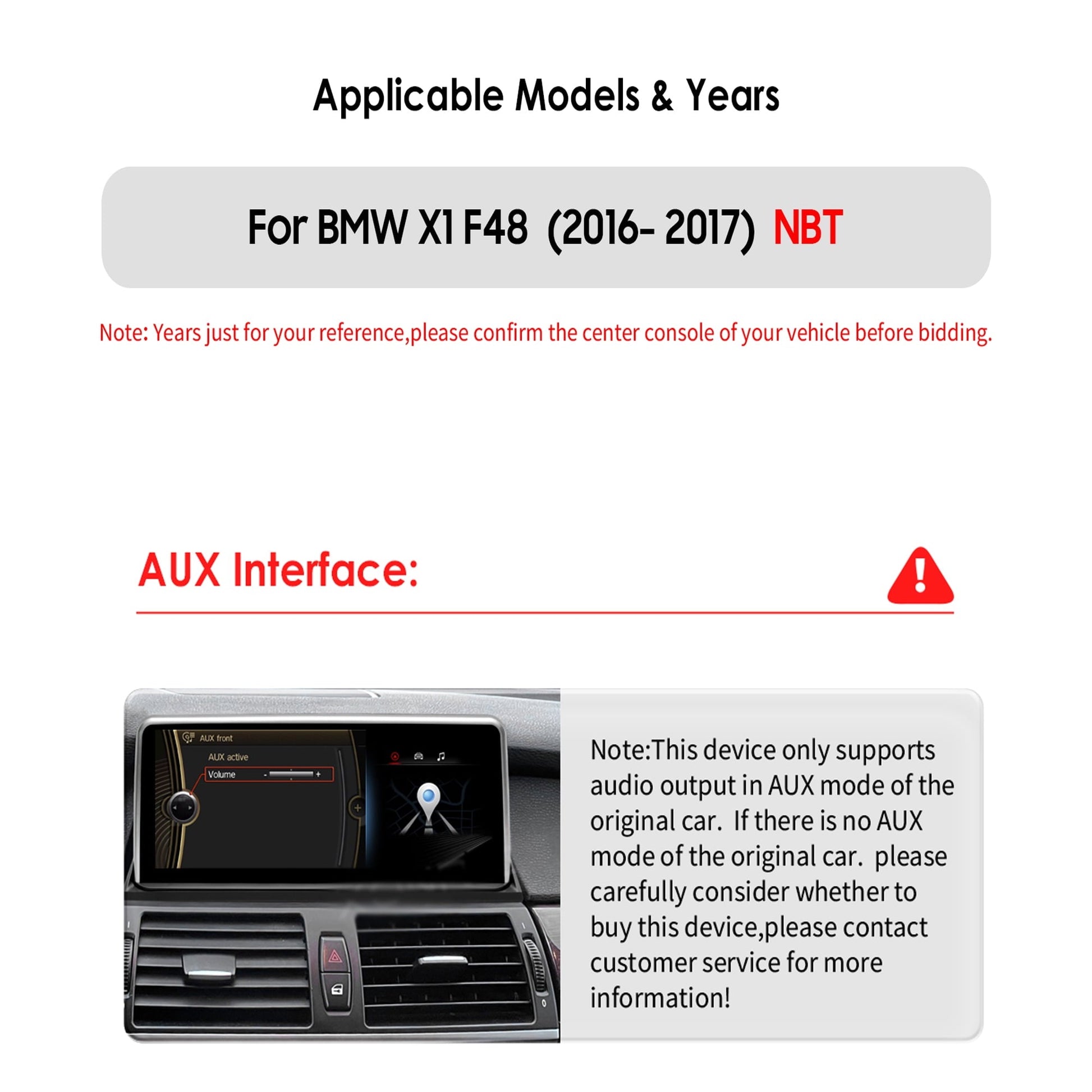 Note: BMW X1 F48 2016 2017 has three different connection systems, CCC, CIC and NBT.