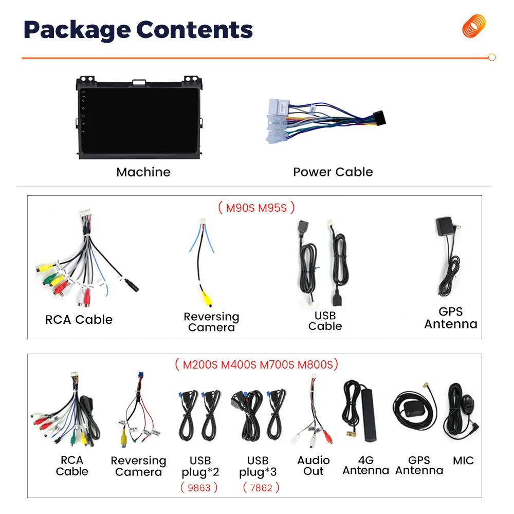>Built-in Carplay and Android Auto function . ( M95S M200S M400S M700S M800S) > Phone| Music | Maps| Podcasts etc.. > Built-in Wireless + wired Carplay and Wireless Android Auto function. You can connect the phone with Android screen together, control and handle mobiles via device, open your safe driving life.