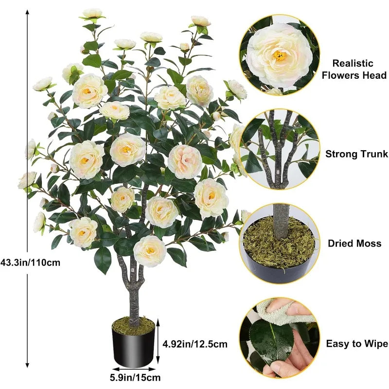 - Perfect Size and Stability: Standing at 43.3" (3.6 ft) tall, this yellow pink artificial camellia is the ideal size for plant decoration. It features a concrete-weighted pot for stability, which can be topped with decorative dry moss to enhance its beauty. This combination makes it a stylish and reliable choice for any space.