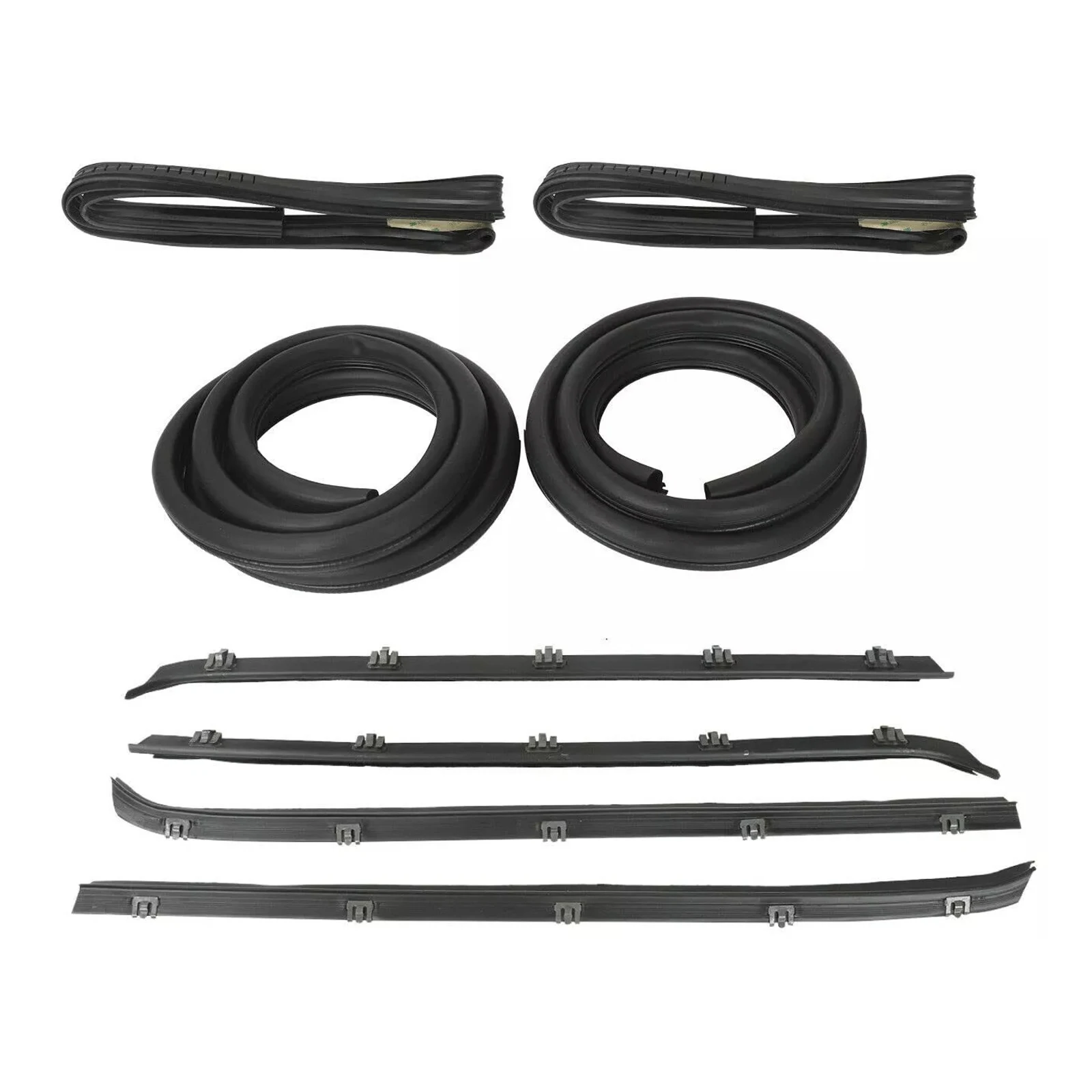 2x Front window run channel seals (front, top, & rear channels)