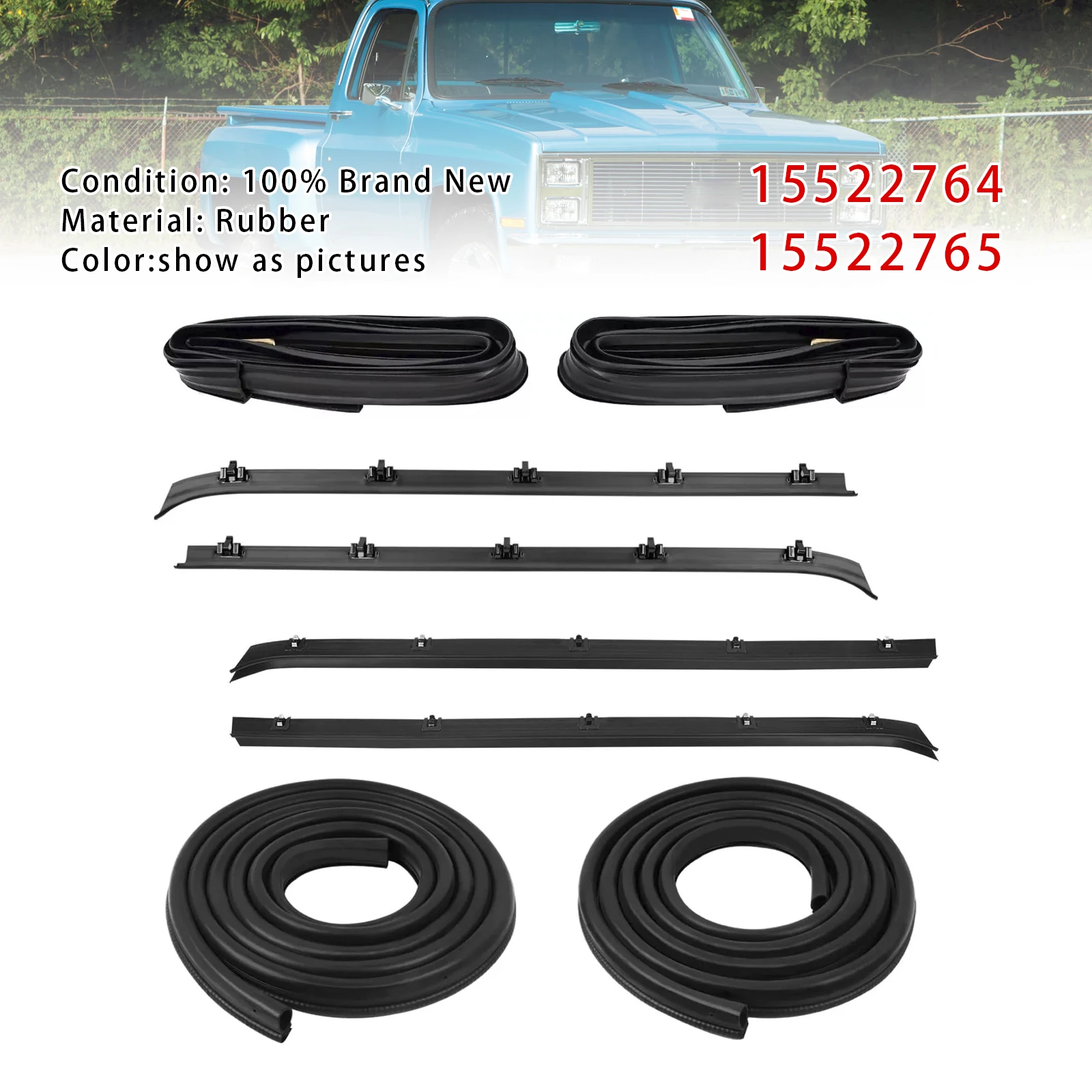 Fits for 1981-86 Chevrolet C10 Truck Front Driver & Passenger Side Door Weatherstrip Seal Kit