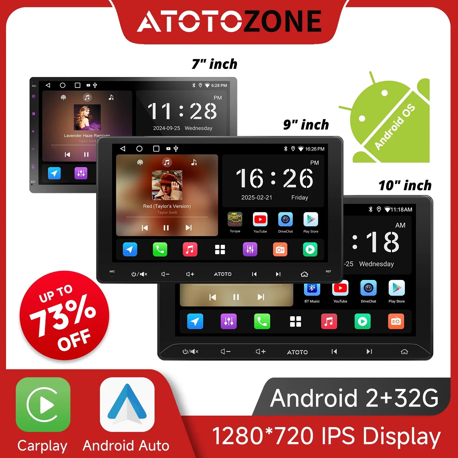 ATOTOZONE 7/9/10 Inch Android Car Stereo Double Din 1280x720IPS Touchscreen FM GPS WiFi Wireless CarPlay/Android Auto AHD Camera