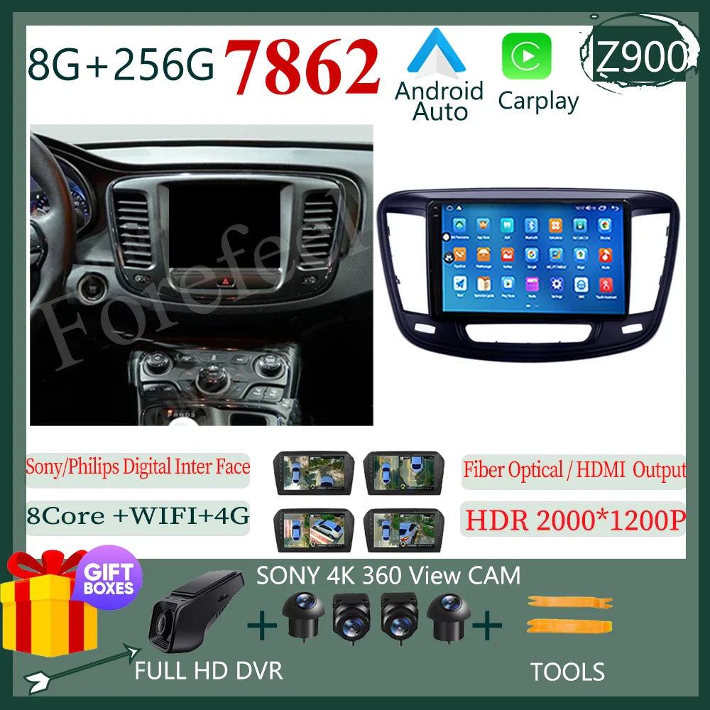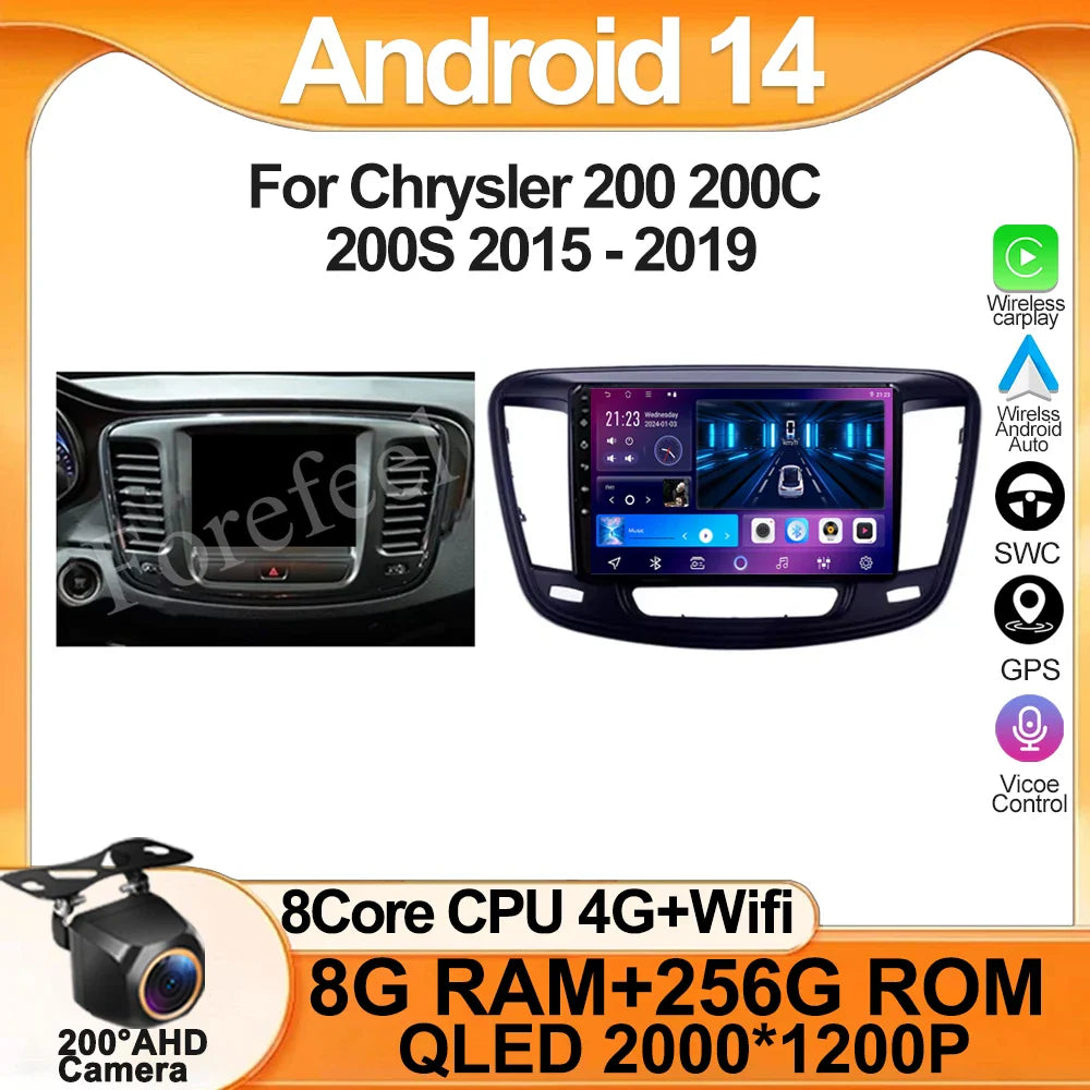 Auto Stereo Android 14 For Chrysler 200 200C 200S 2015 - 2019 Car Radio Navigation GPS Touch QLED Screen DVD Video Player DSP BT