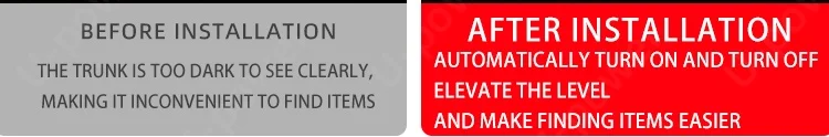 This light strip can be directly inserted into the original car trunk small light. Using magnetic induction design, connecting the magnetic piece to the sensing position can turn off the light, achieving the effect of automatically turning off the light after closing the luggage compartment. Easy and fast installation