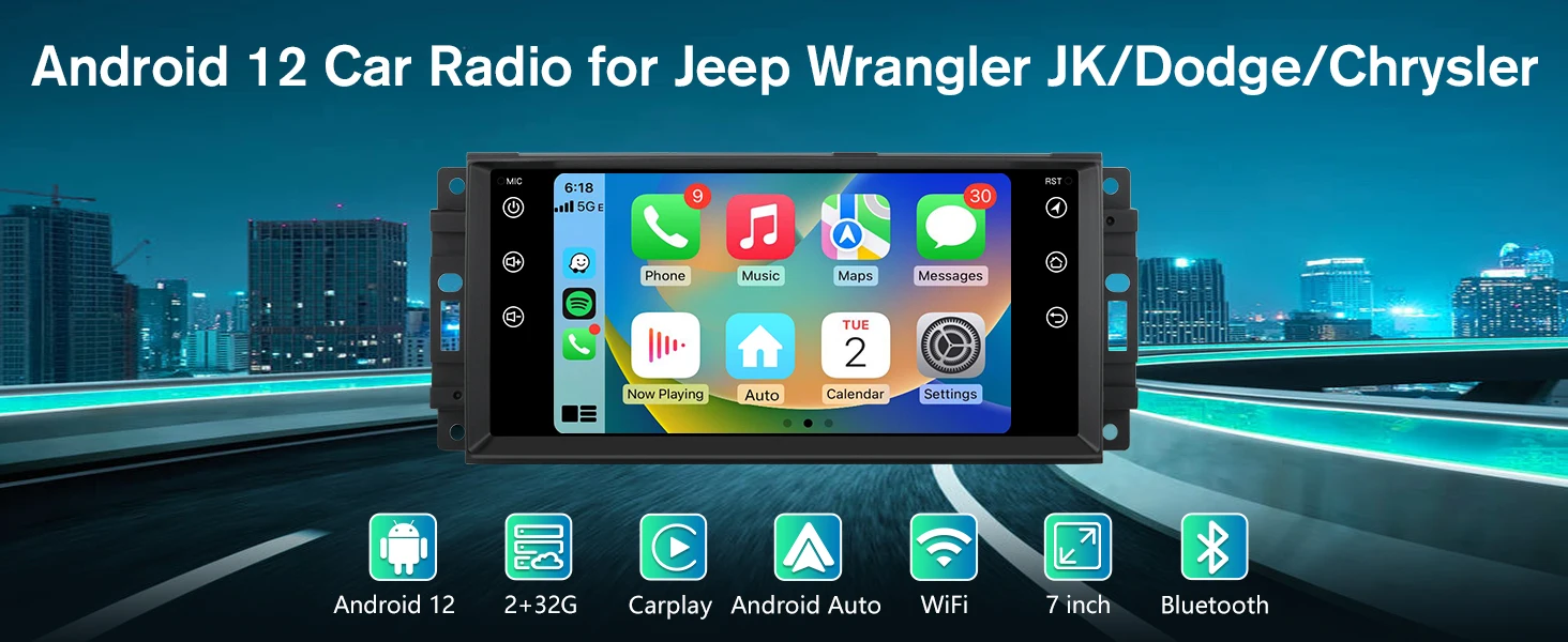 AWESAFE Wireless CarPlay Android 12 Radio For JEEP Wrangler JK Dodge Chrysler GPS Navigation Stereo Car Intelligent Systems