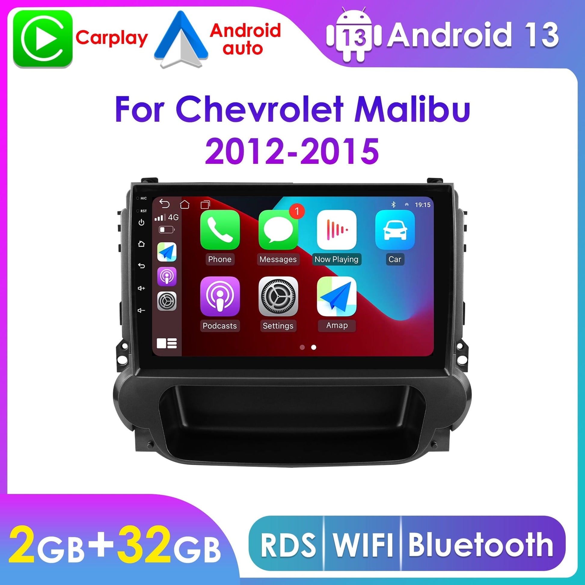 Bluetooth Apple Carplay 2+32GB Android 13 Wifi RDS 9" Touch Screen Car Stereo Radio Head Unit Multimedia GPS Navigation Player For Chevrolet Chevy Malibu 2012 2013 2014 2015