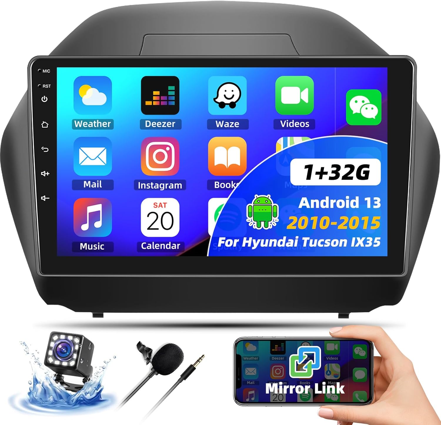 CAMECHO 2+64G Android 13 Car Radio for Hyundai Tucson IX35 2010-2015,with CarPlay Android Auto Bluetooth WiFi HiFi & EQ GPS + AHD Backup Camera