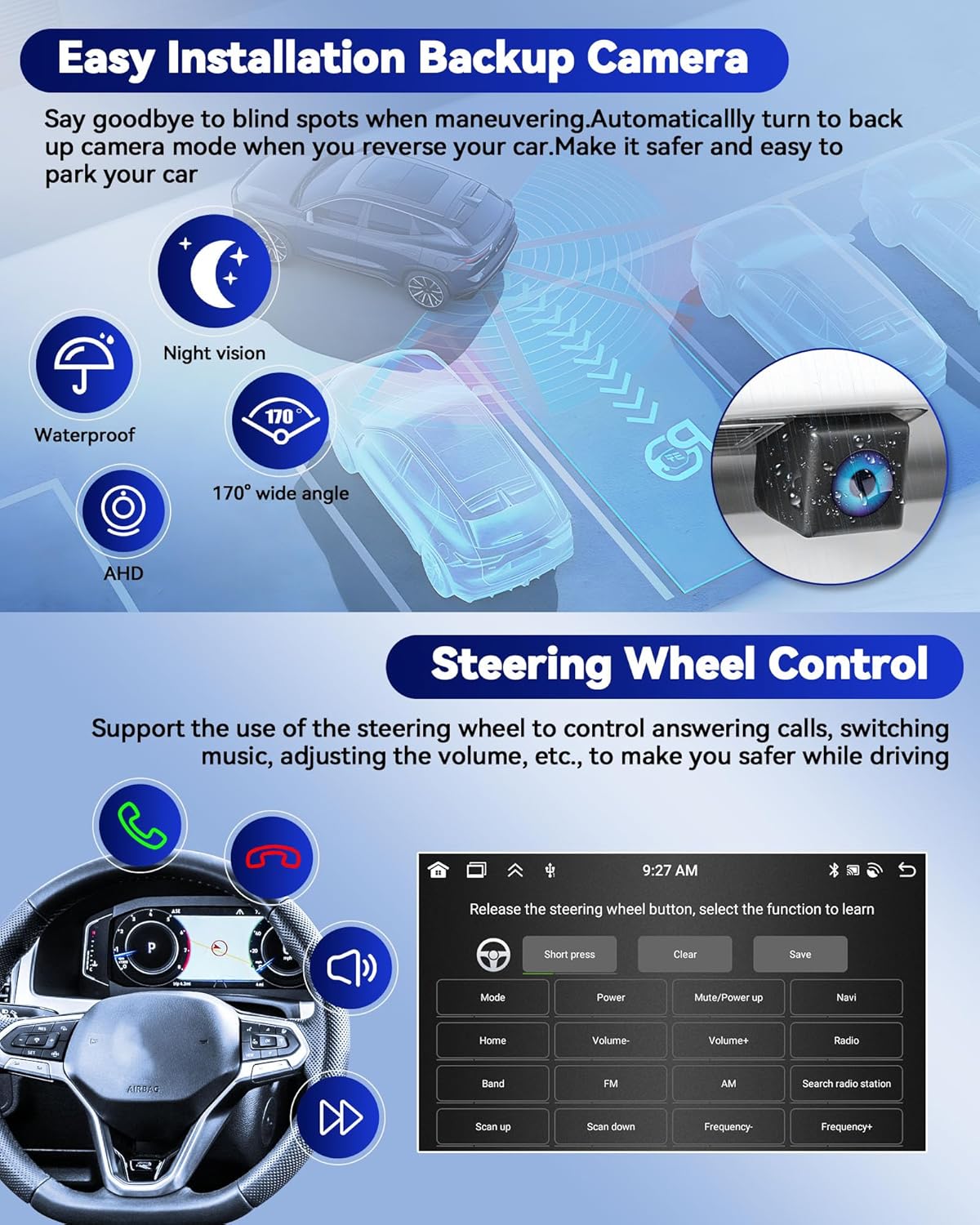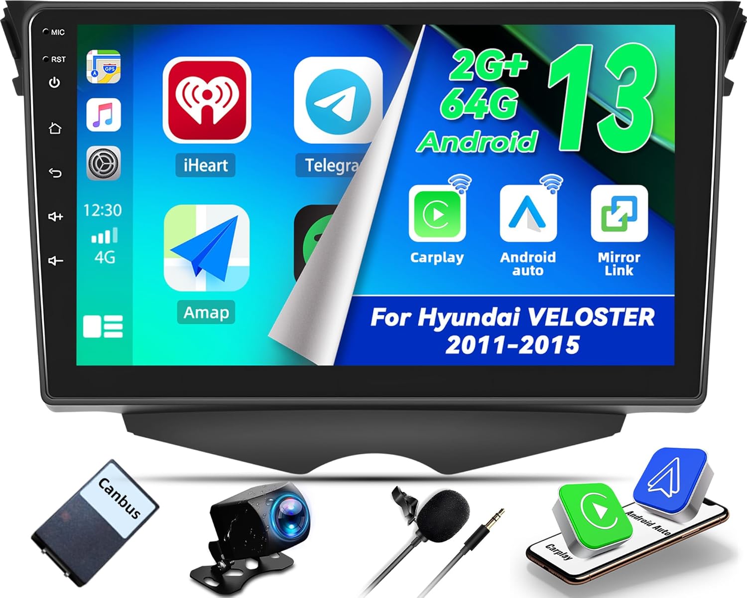 CAMECHO 9'' Touchscreen Car Radio for Hyundai Veloster 2011-2015 Head Unit with Carplay Android Auto, 2+64G Android 13 with Bluetooth 5.0, GPS Navigation, WiFi, FM/RDS + Backup Camera & Microphone
