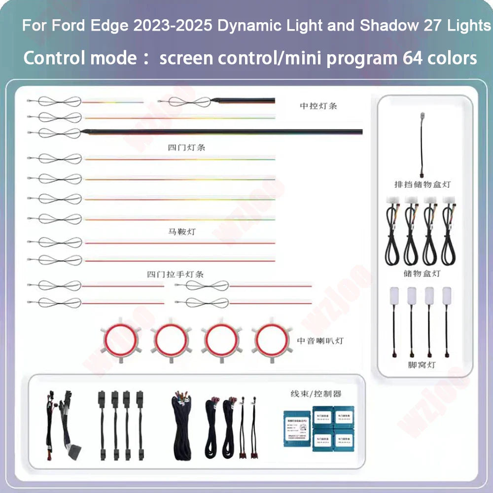 Car 64 colors dynamic Ambient light for Ford Edge 2023 2024 2025 Atmosphere Lamp upgrade screen APP control