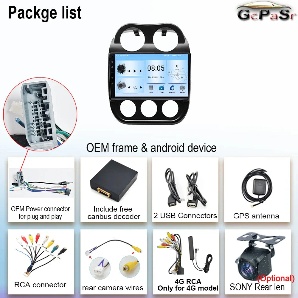Car Android 13 For JEEP Compass Patriot 2011 - 2017 Auto Radio Multimedia Player GPS Navigation Carplay Stereo 4G BT No 2din DVD