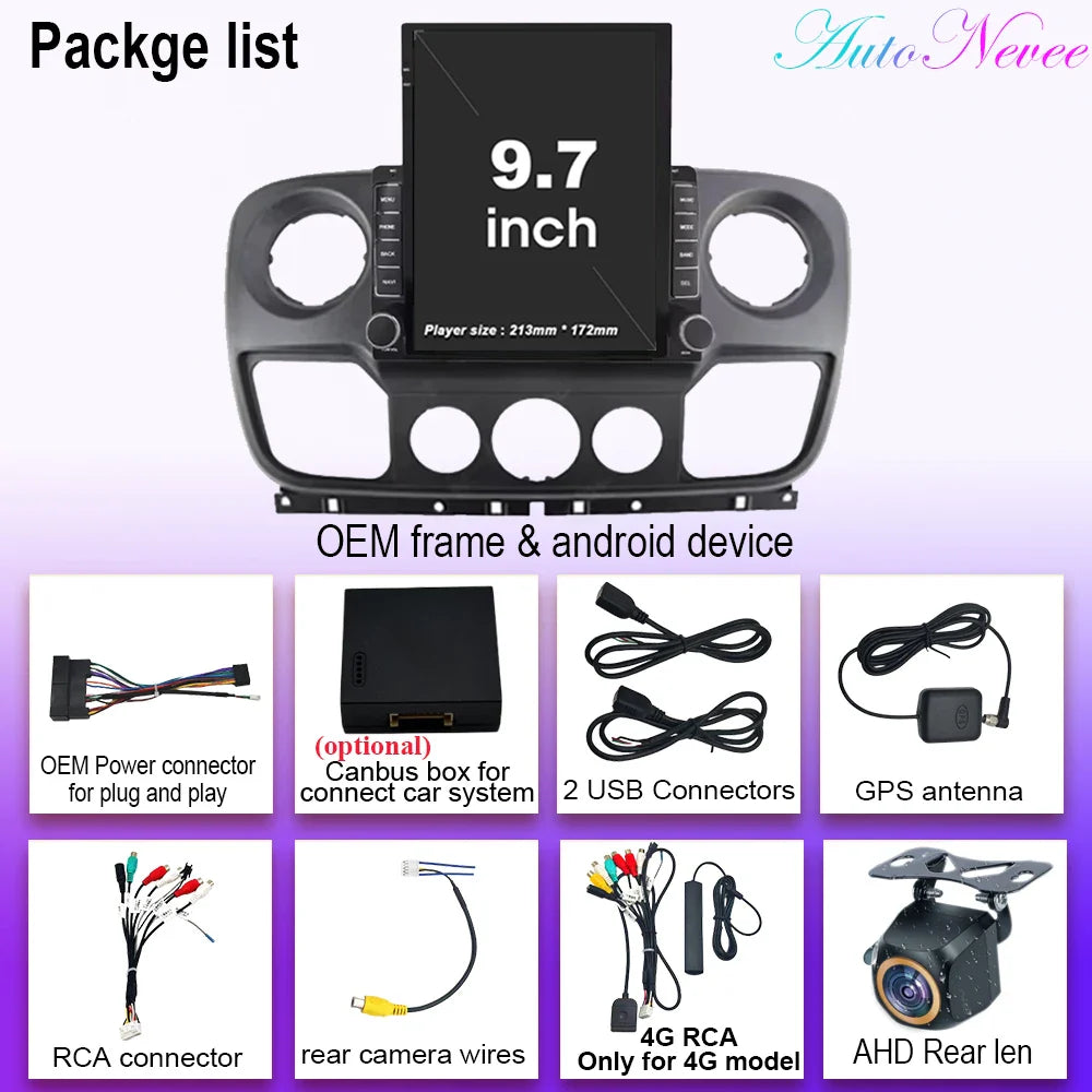 Car Android 14 For Renault Master Nissan NV400 Opel Movano 2010 - 2021 Navigation Touch Screen Multimedia Player Head Unit GPS
