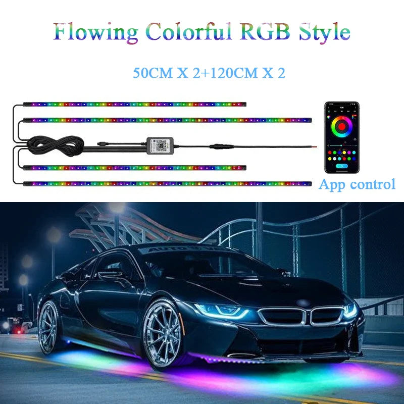 SOUND ACTIVE- The LED under car glow system is equipped with sound sensors that lets the LED lights synchronized with music beat.The LED music light strip follows the beat and adjusts flashing to fit the strength of the sound.