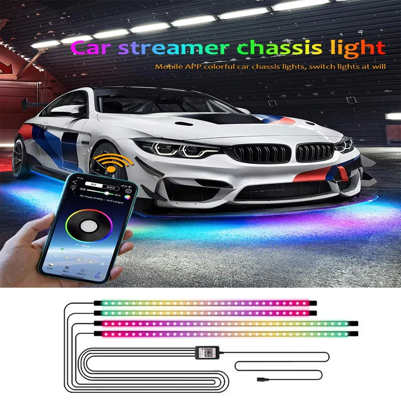 Car Flexible Strip Light Led Flow Light Colorful Chassis Ambient Light Car Underglow Atmosphere Lamp Waterproof RGB App Control