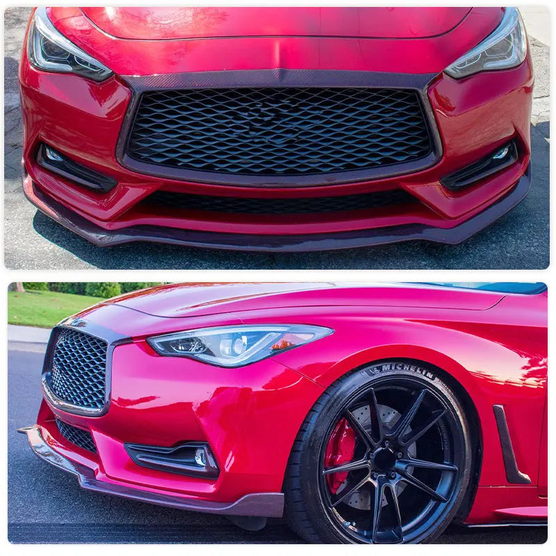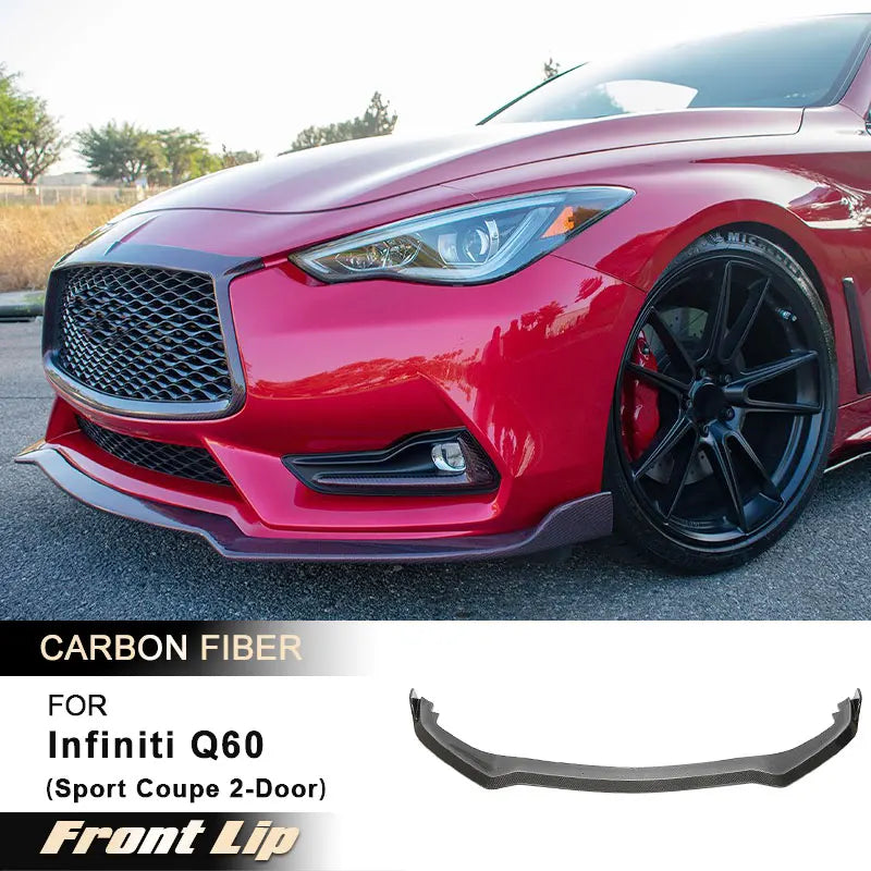 Car Front Bumper Lip Spoiler for Infiniti Q60 Sport Coupe 2-Door 2016-2022 Front Lip Chin Apron With Splitters Carbon Fiber
