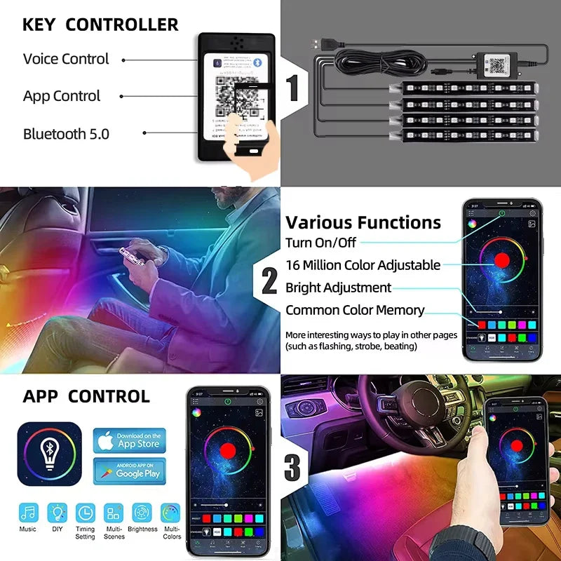 Car Interior RGB LED Strip Lights – Smart APP, Music Sync, Flexible Glow – Your Ultimate Ambient Decoration