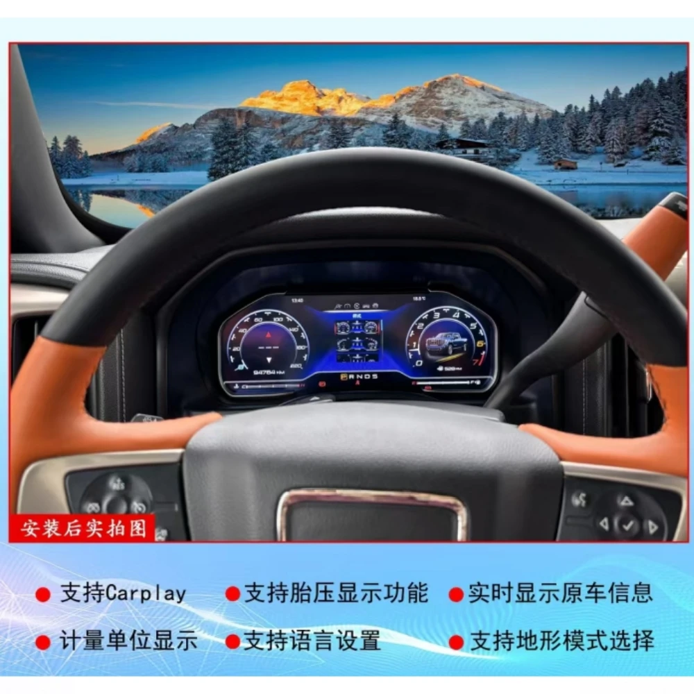 - Outlook:Full LCD 4 UI modes. - GPS navigation , network connection, 1080P night vision, tire pressure , multi-language, entertainment are all available. - The LCD instrument supports Wifi 3G - Supporting backing camera, backing trajectory and the reminder of obstacles. - Supporting mirror link of mobile. - Supporting installing the 360 Full view. - Supporting the three modes display : Economic mode; Sport mode and Comfortable mode. - The display of Android Area can enlarged and lessened.