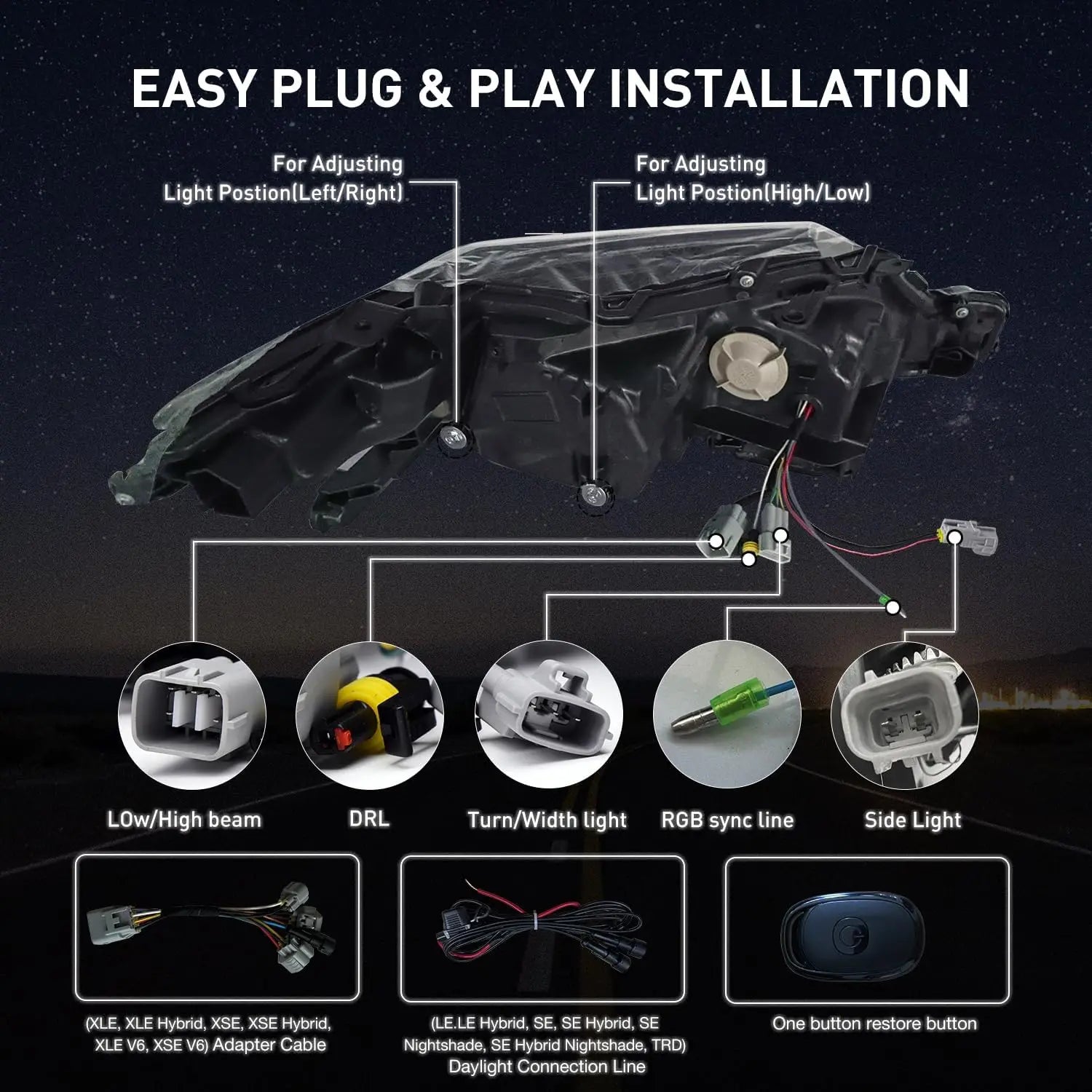Car Light For 2018-2023 Toyota 8th Camry RGB Headlight DRL Dynamic Lamps Sequential Turn Signal