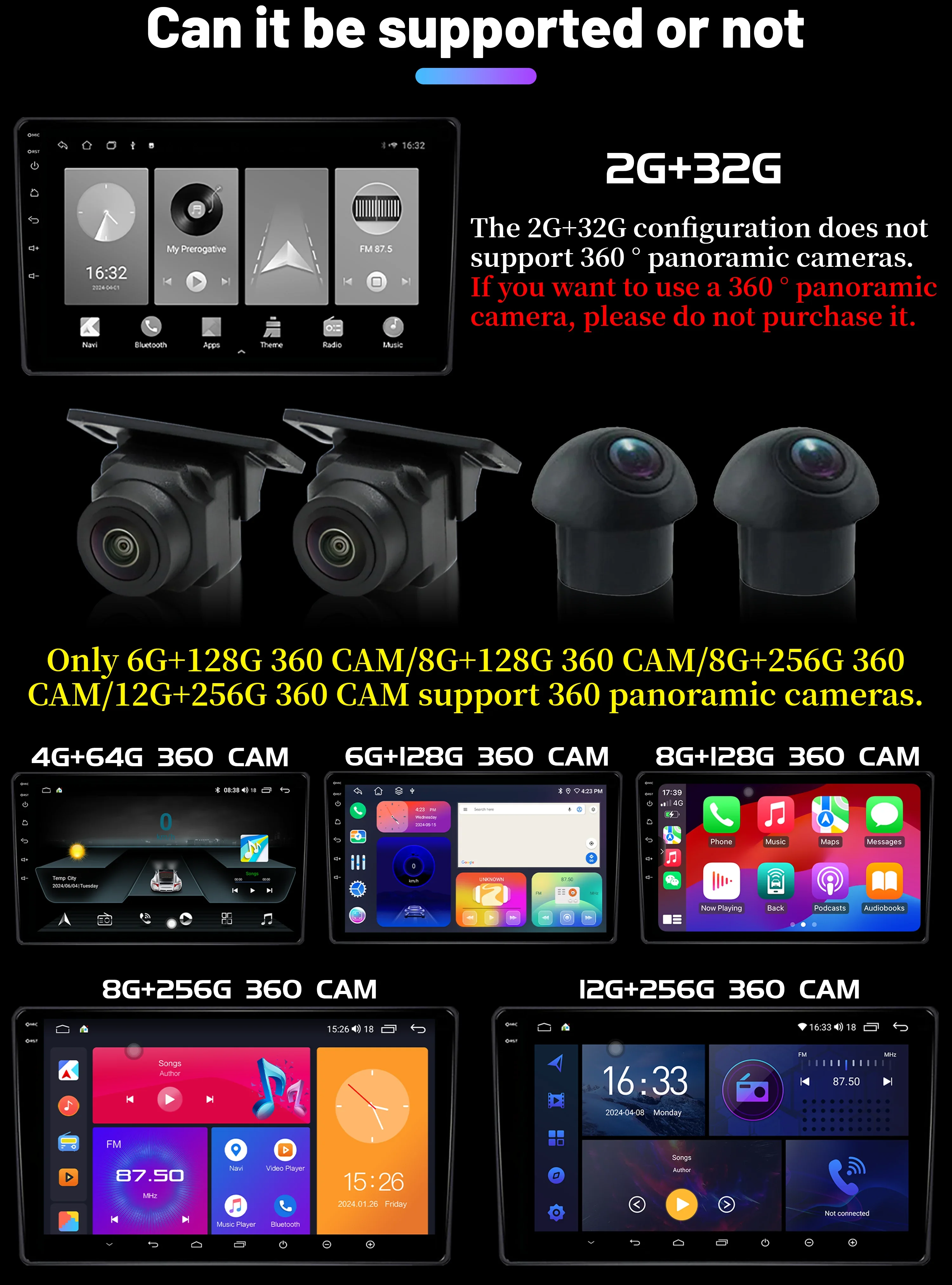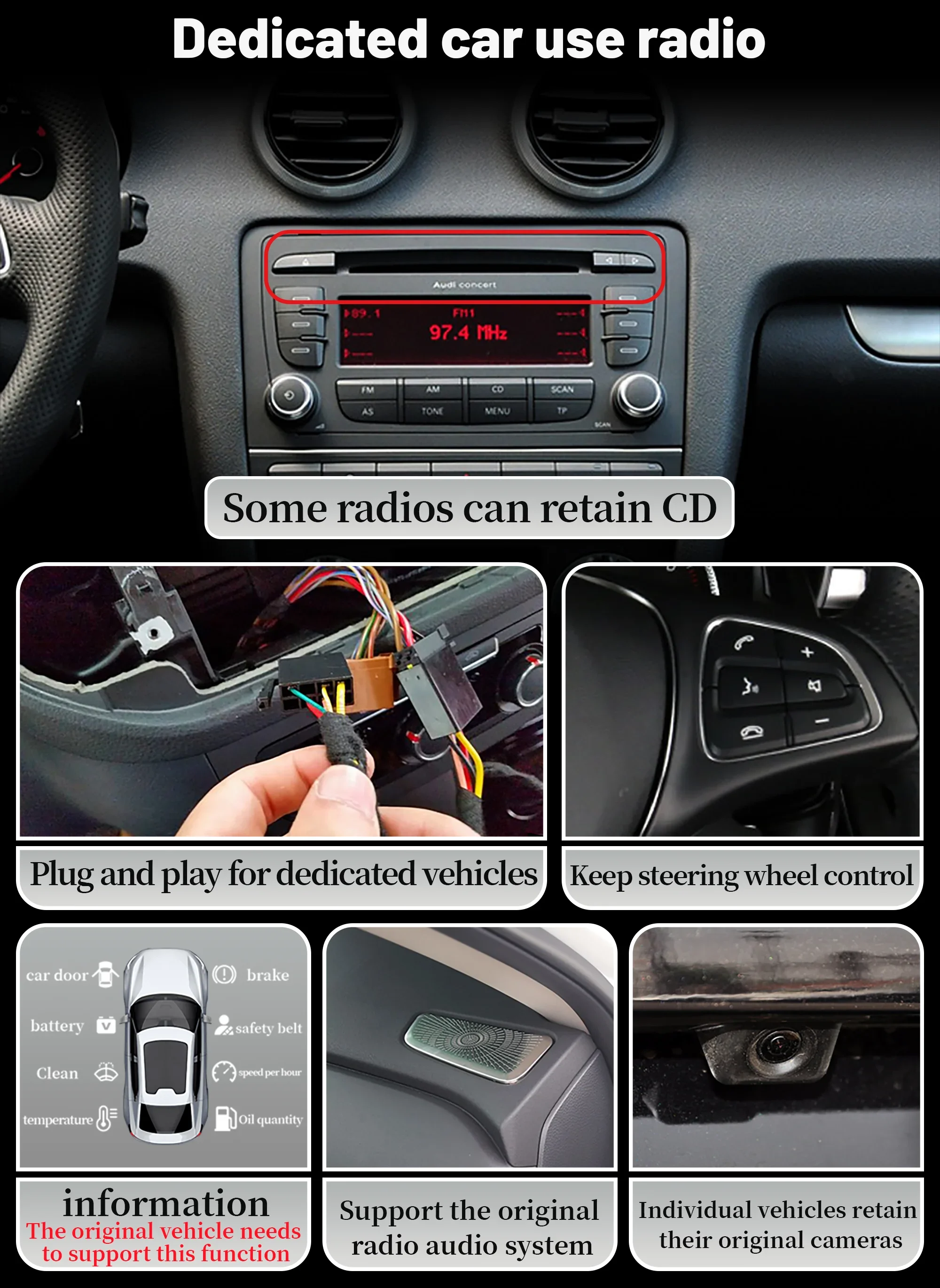 - Supports Android 14 system and models with Canbus support Air conditioning display, multifunctional steering wheel control, original rear camera, original 360 degree panoramic camera support, Parking system,original knob control, etc.Please confirm with customer service for specific supported vehicle models. Not all vehicle models are supported