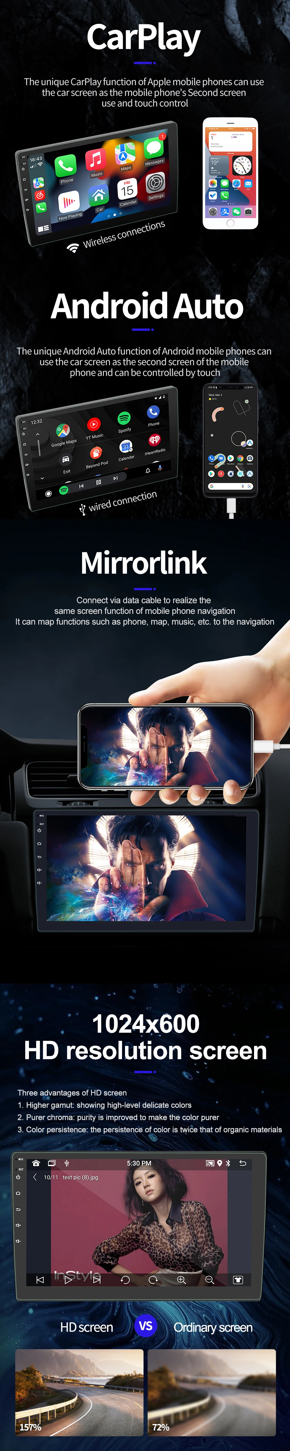 Mirror Link:Support,for IPhone and Android phone