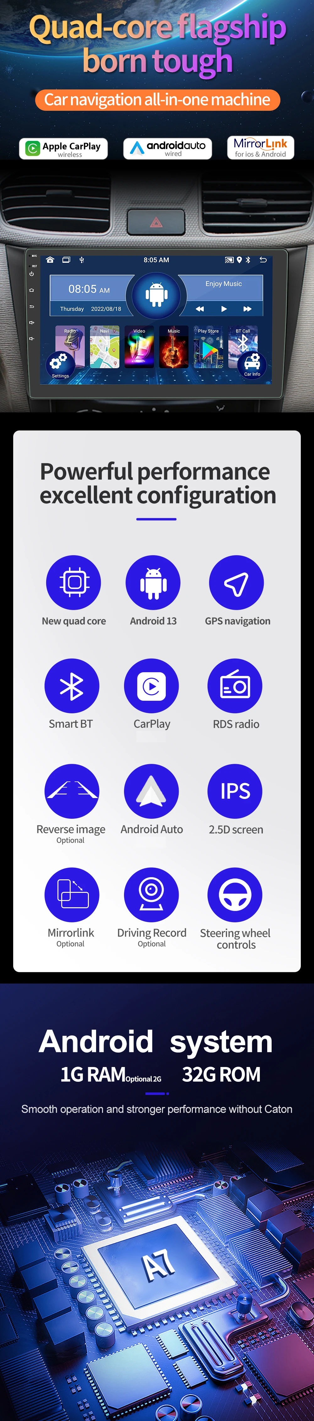 RAM/ROM:1GB+32GB(Optional 2GB+32GB)