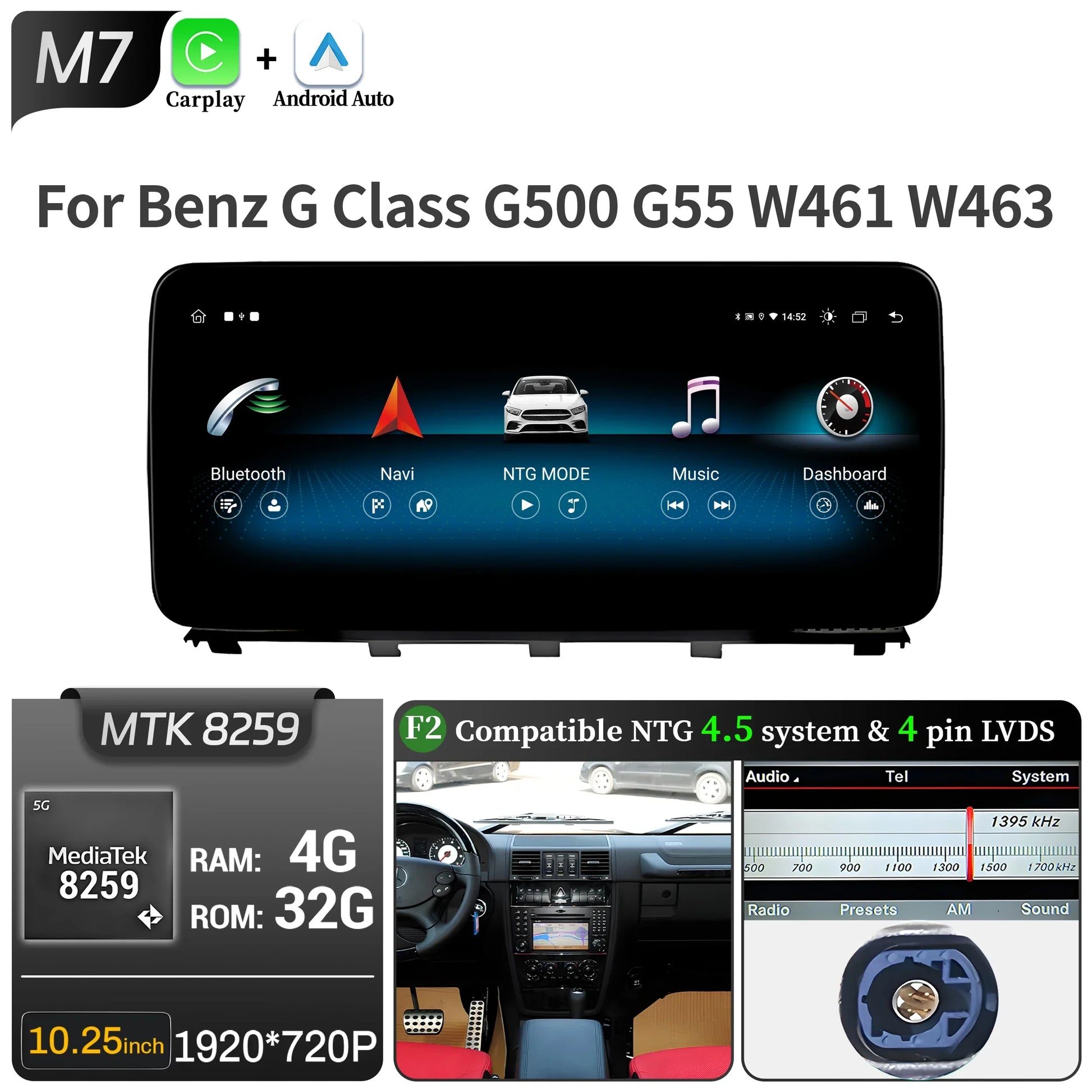 Car Radio For Mercedes Benz G Class G500 G55 W461 W463 2008-2015 Android 14 Wireless BT Carplay Snapdragon 680 Head Unit Screen