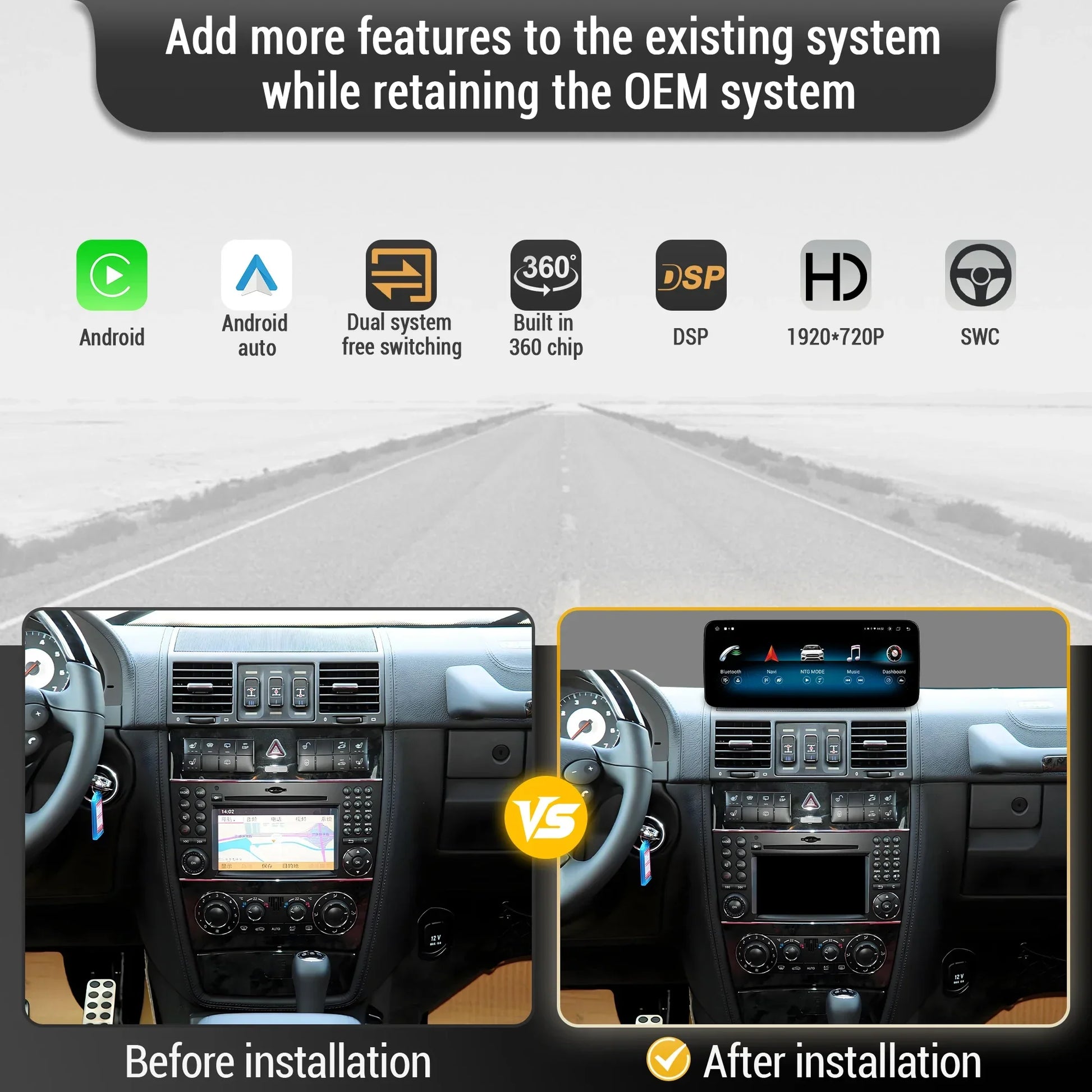 - Keep the original system and all functions.Support original car information display.